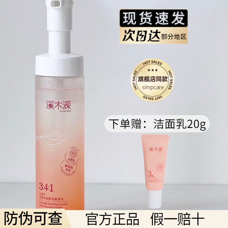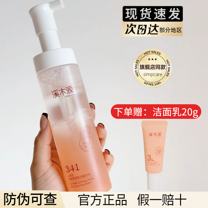 📚 溪木源山茶花洗面奶氨基酸慕斯洁面深层清洁敏感肌保湿官方正品