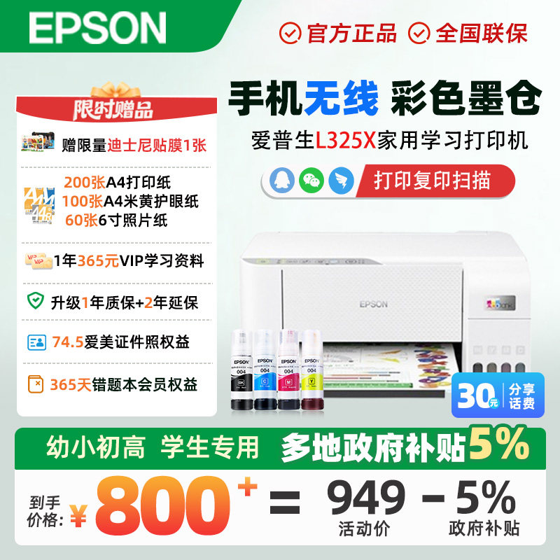 #政府补贴 #打印机 #爱普生L3251 #学生作业 #家庭使用 #无线双面打印