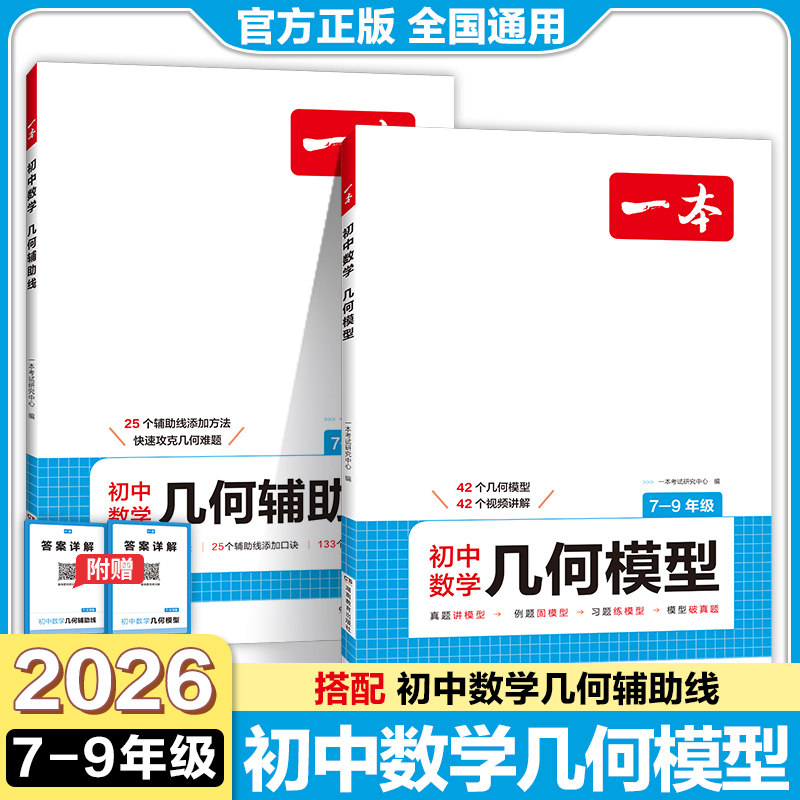📚 一本初中数学几何模型视频讲解必考高频例题数学知识大盘点数学函数应用题几何辅助线真题思维导图组合练专项训练初一初二初三通用