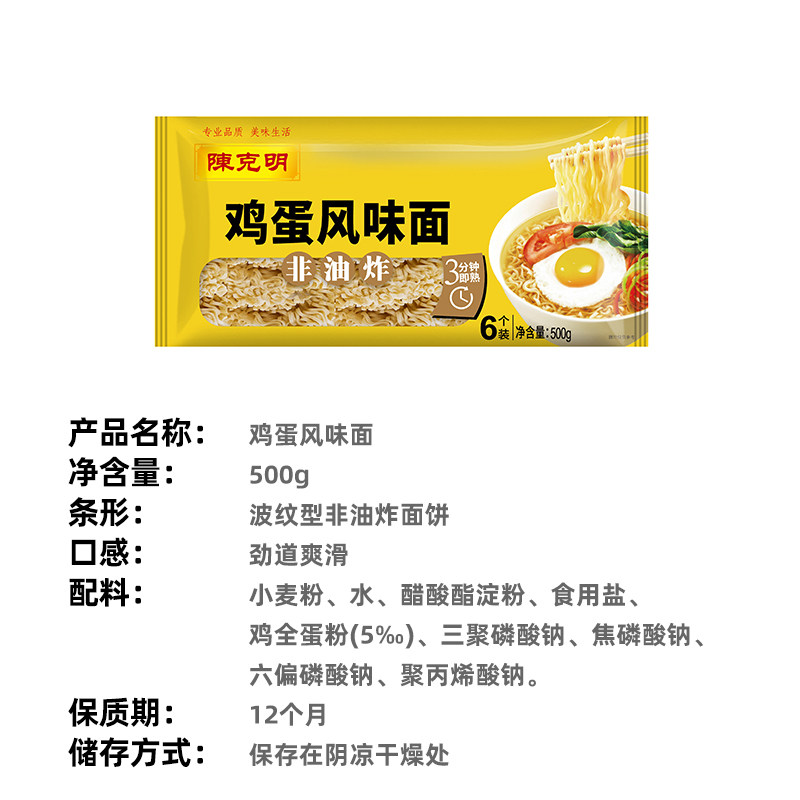 📚 陈克明面非油炸鸡蛋波纹面方便火锅面条早餐速食面饼