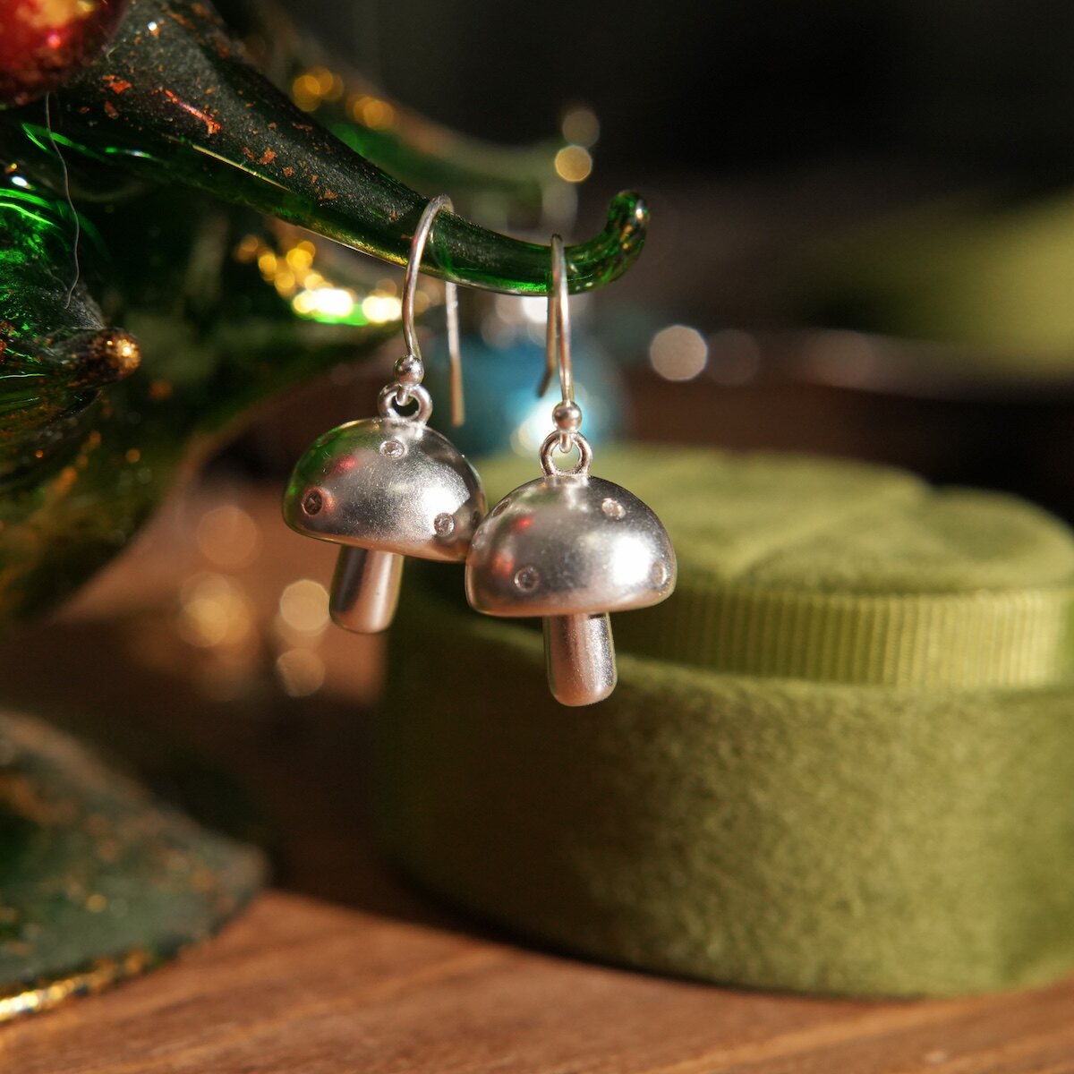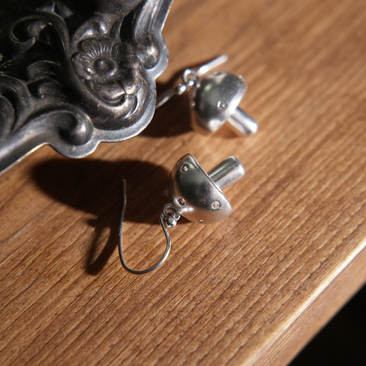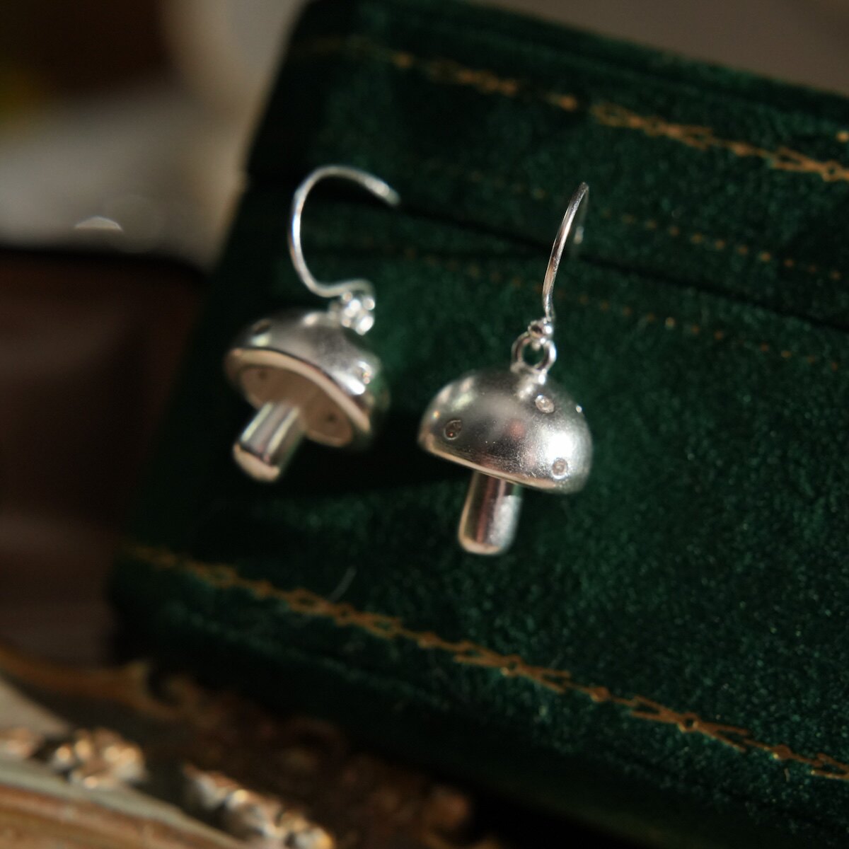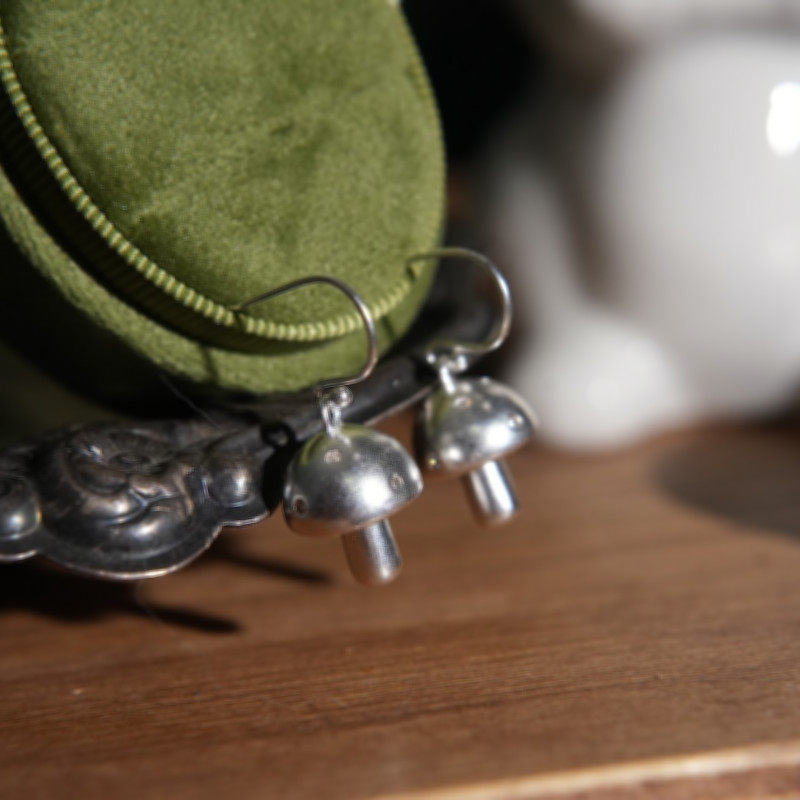 📚 moontreasure森系植物可爱蘑菇s925纯银耳环耳夹立体小众耳饰