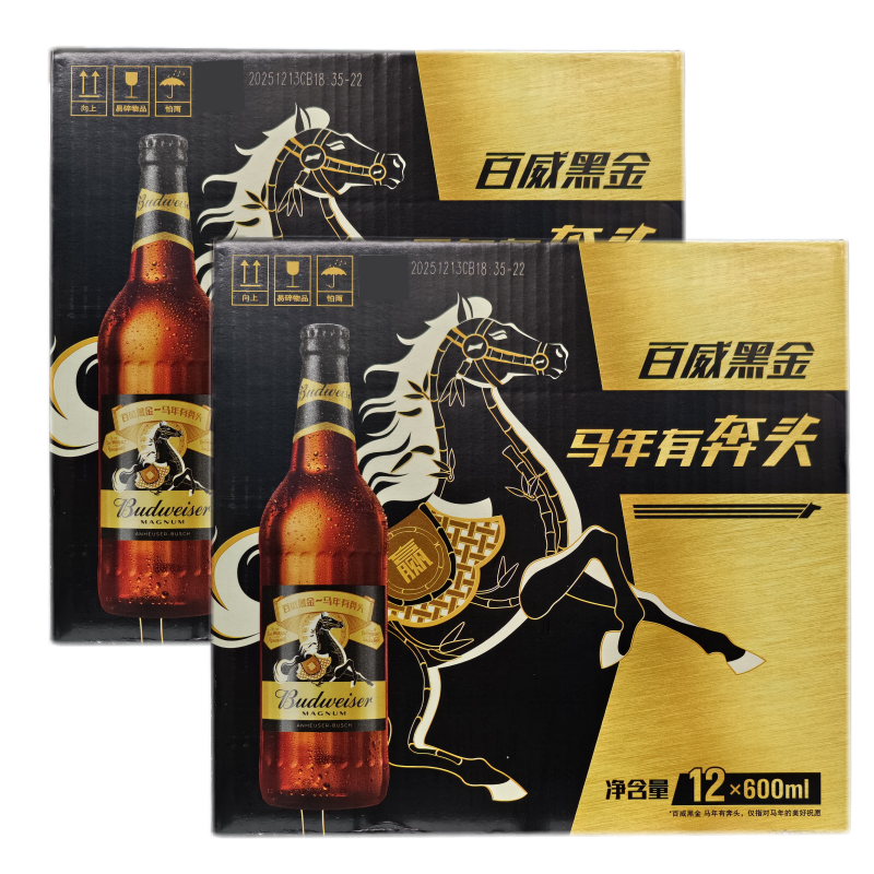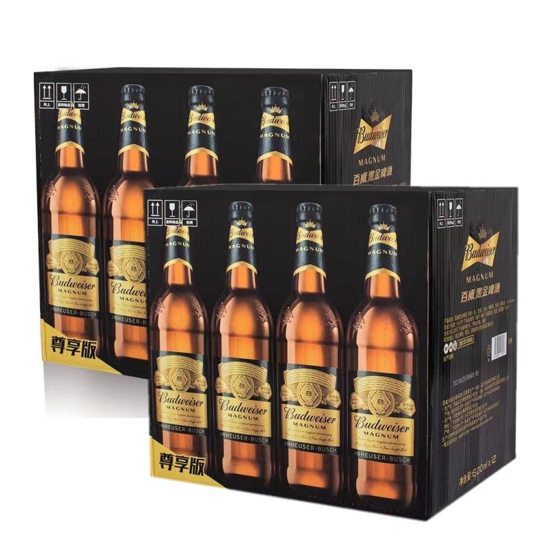 📚 2箱百威黑金啤酒600ml*24瓶装整箱尊享版大师高酒精麦汁大瓶精酿