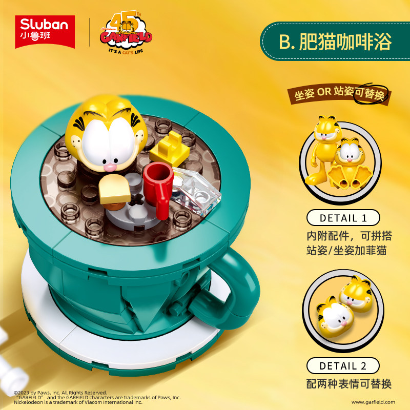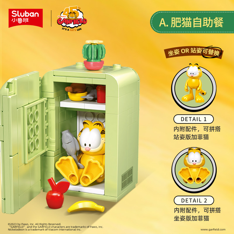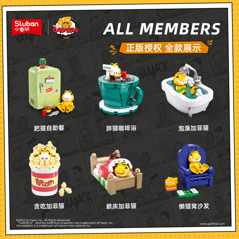 📚 小鲁班积木加菲猫正版官方周边街景潮玩摆件拼装玩具儿童礼物正品