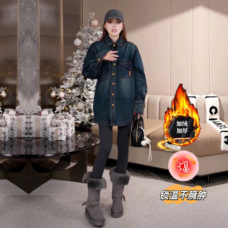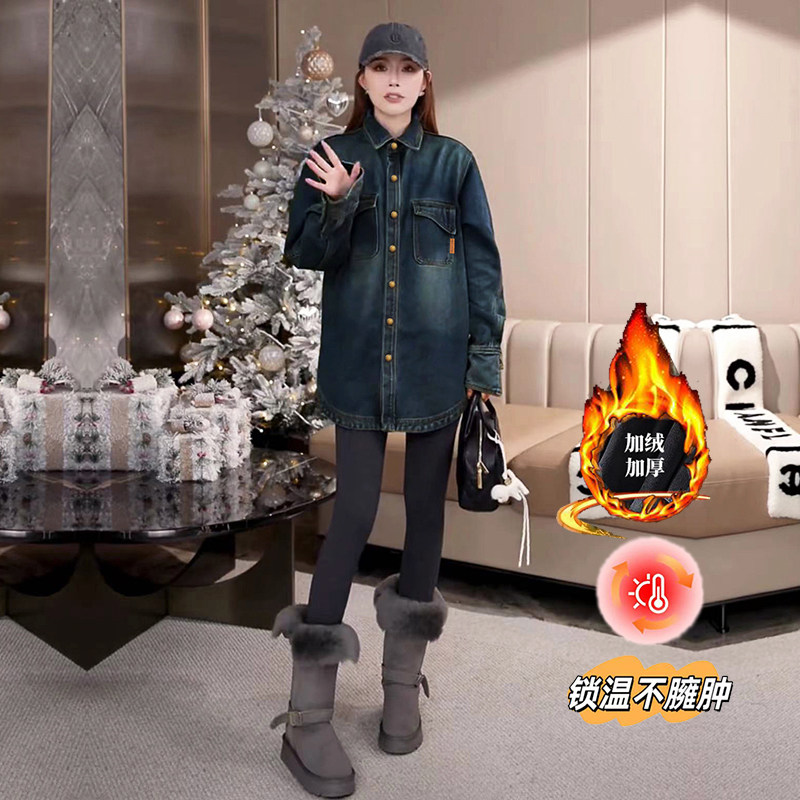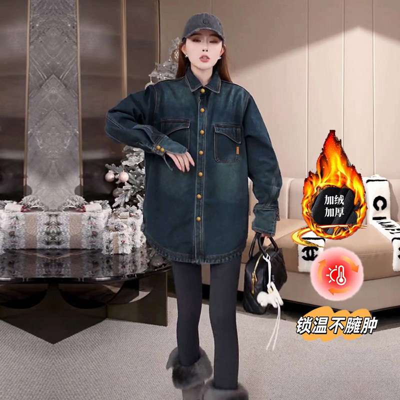 📚 加绒衬衫女冬季高级感欧货复古慵懒风宽松加厚一体绒牛仔衬衣上衣