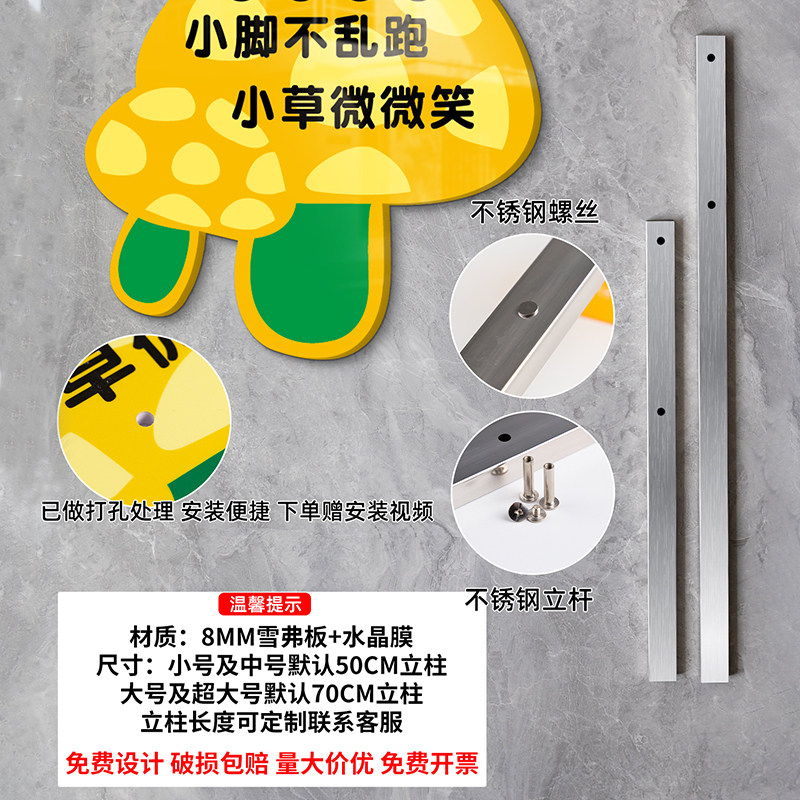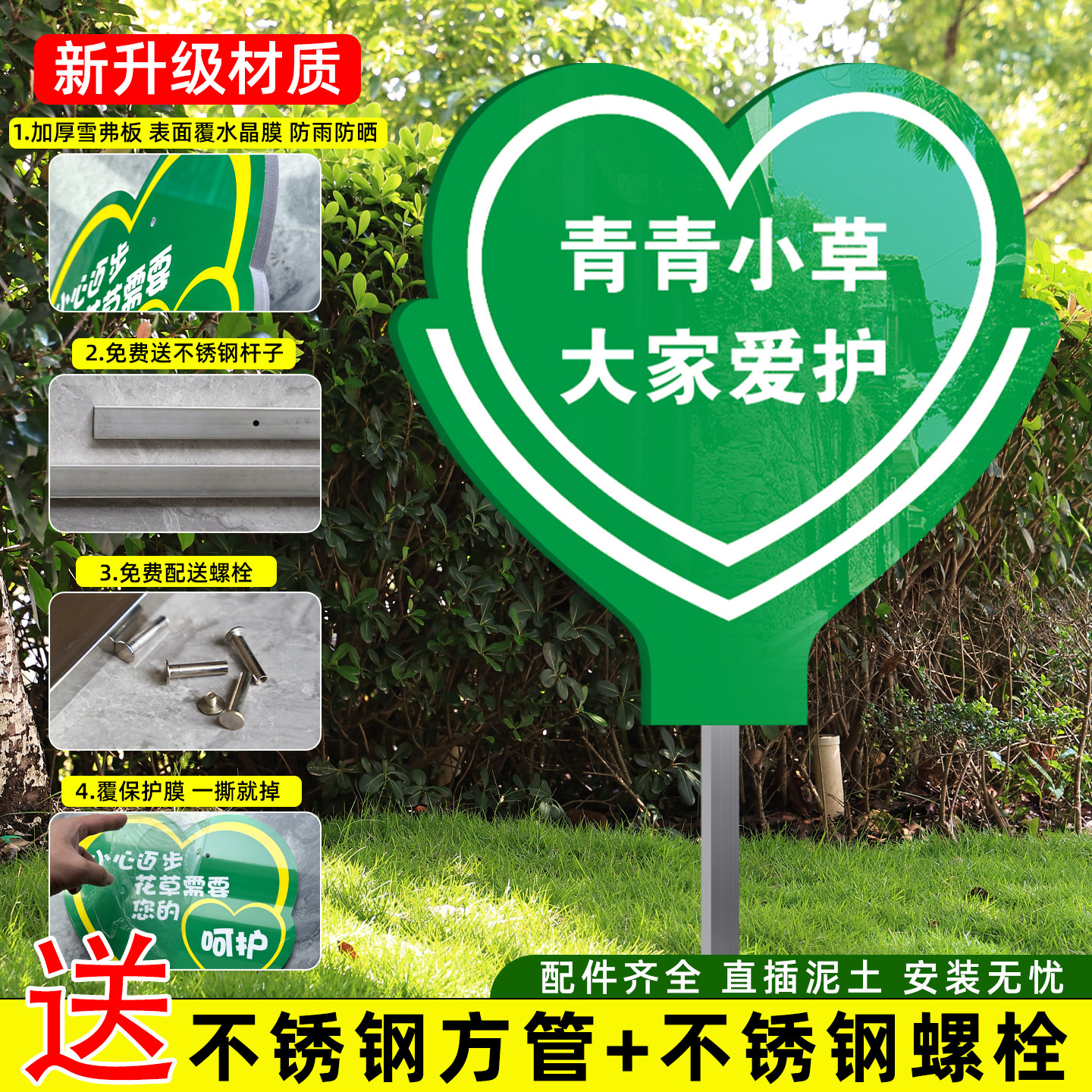 📚 定制花草牌标识牌爱护环境请勿踩踏绿化温馨提示插地牌禁止践踏草坪小草户外公园草地标语监控请勿采摘警示牌