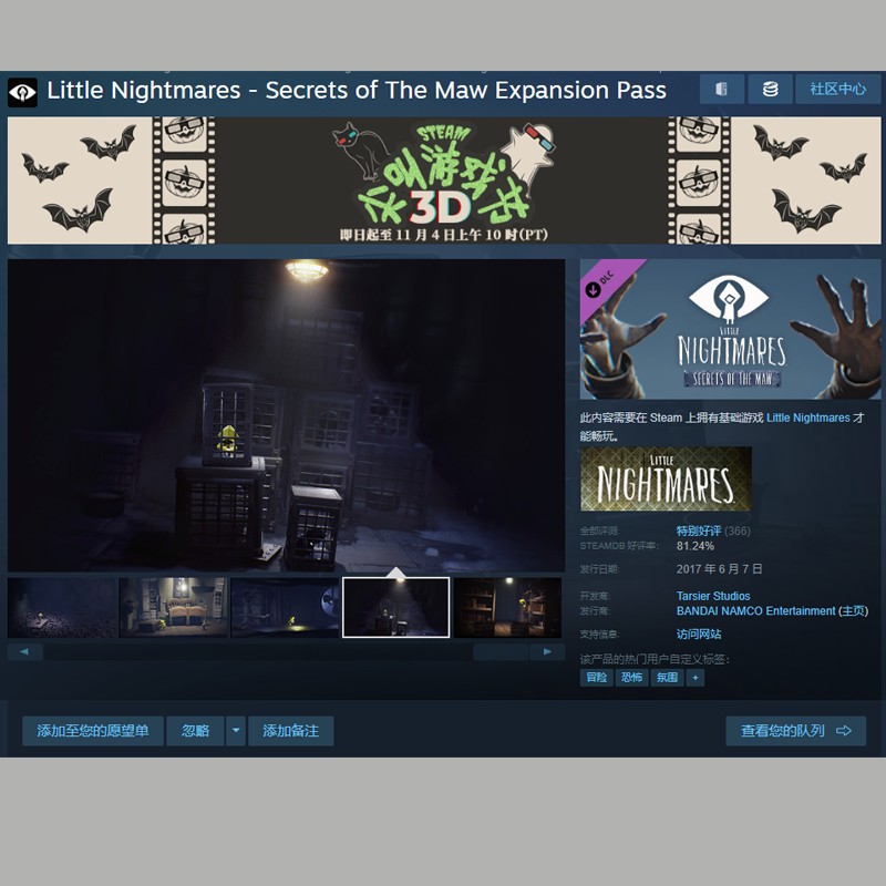 📚 Little Nightmares 小小梦魇 季票 STEAM正版全球区 CDK激活码