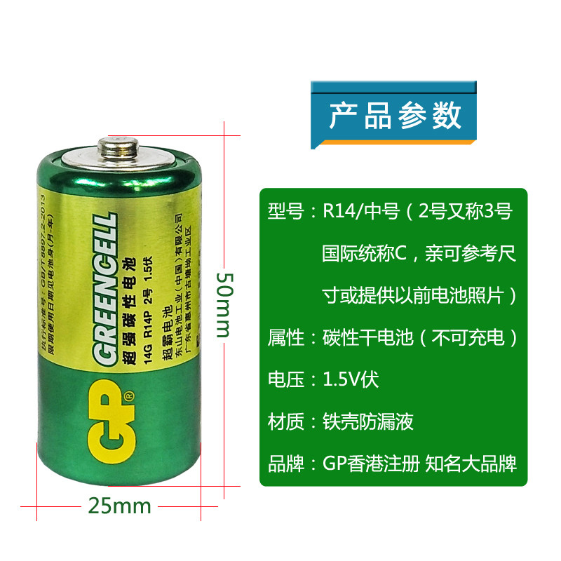 📚 GP超霸电池2号二号通3号R14中号C型1.5v碳性花洒费雪玩具万用表用