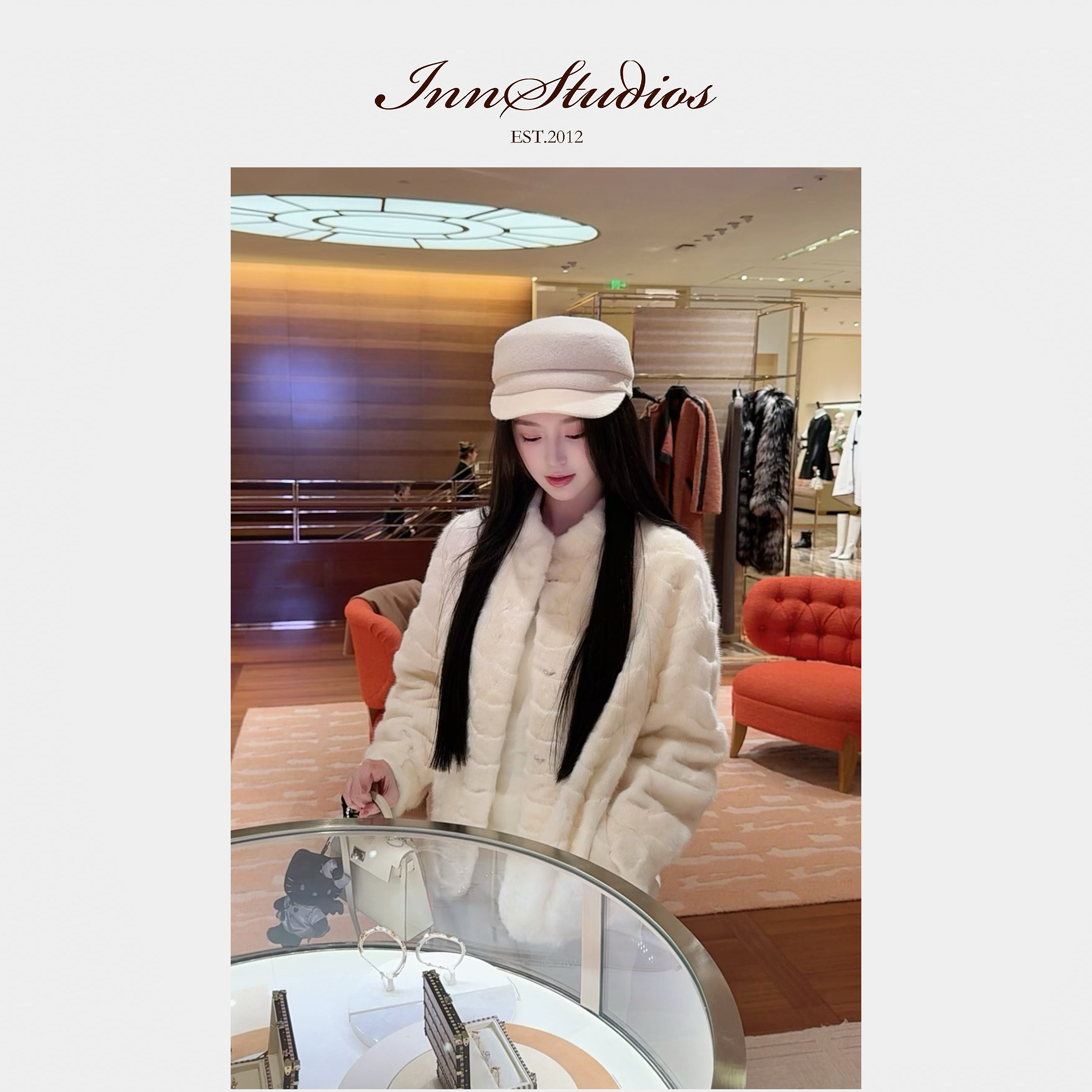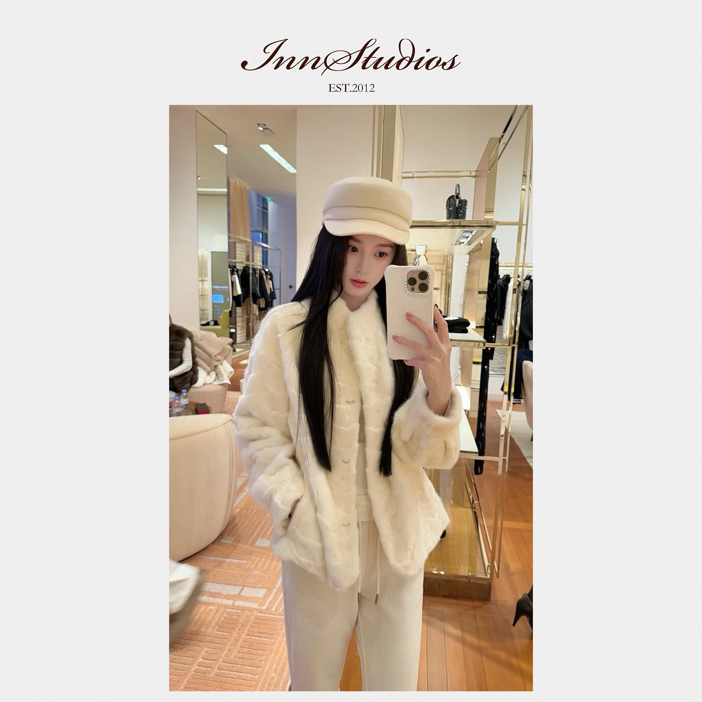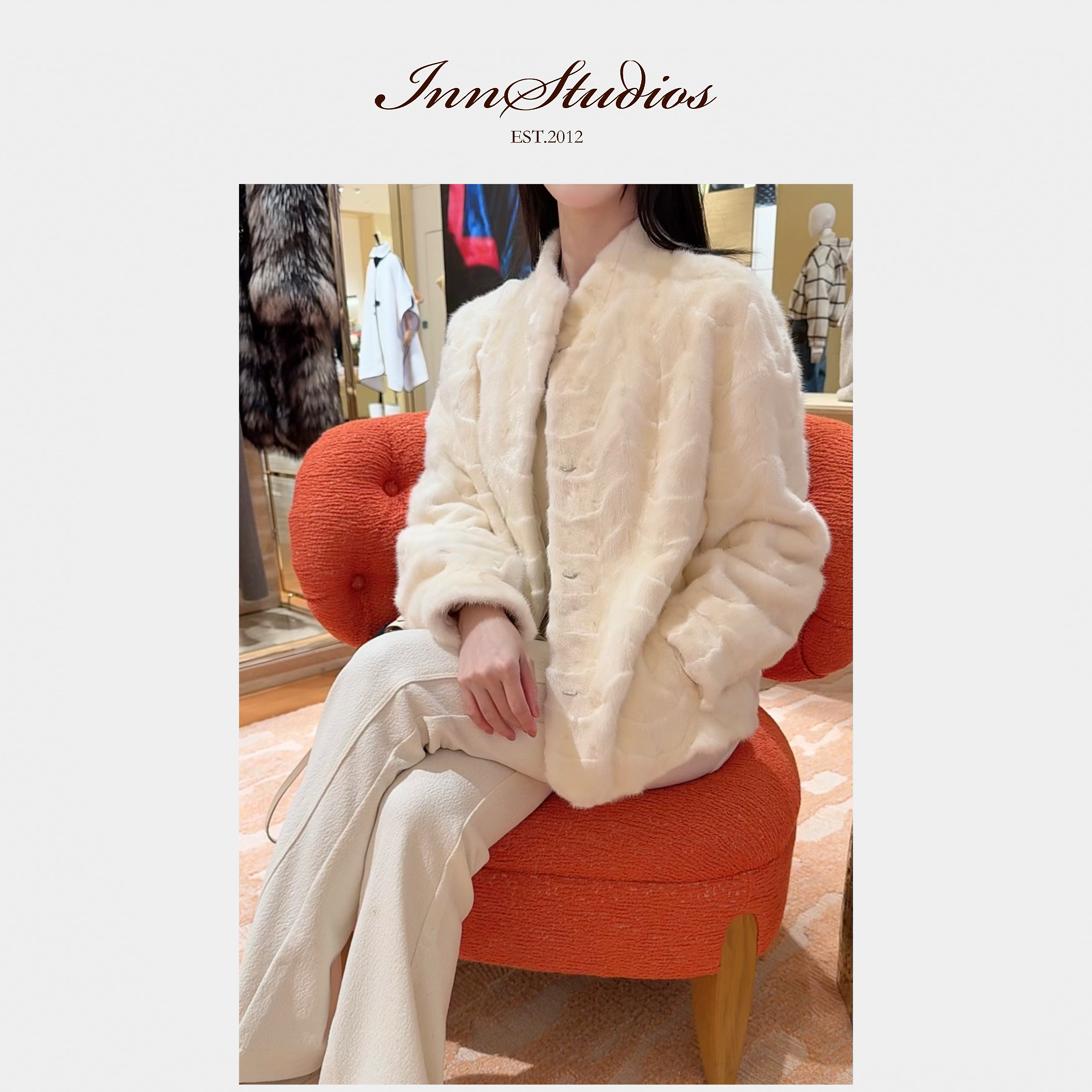 📚 Innstudios「流光月牙貂」进口水貂雪白色保暖水貂长袖外套