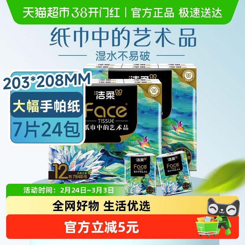 📚 洁柔手帕纸艺术油画迷你加厚4层7张24包小包餐巾纸卫生纸面巾纸