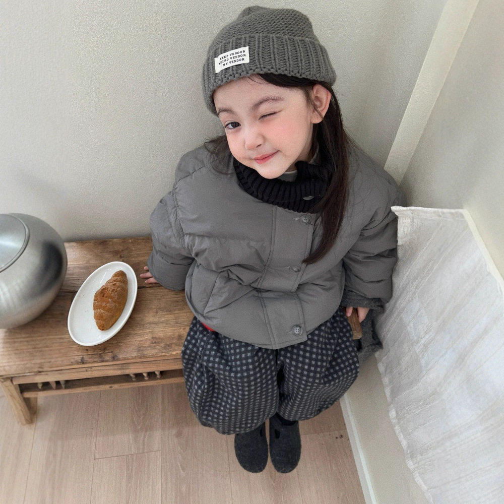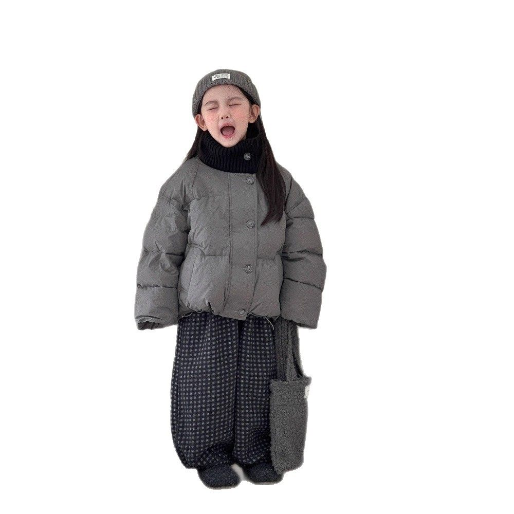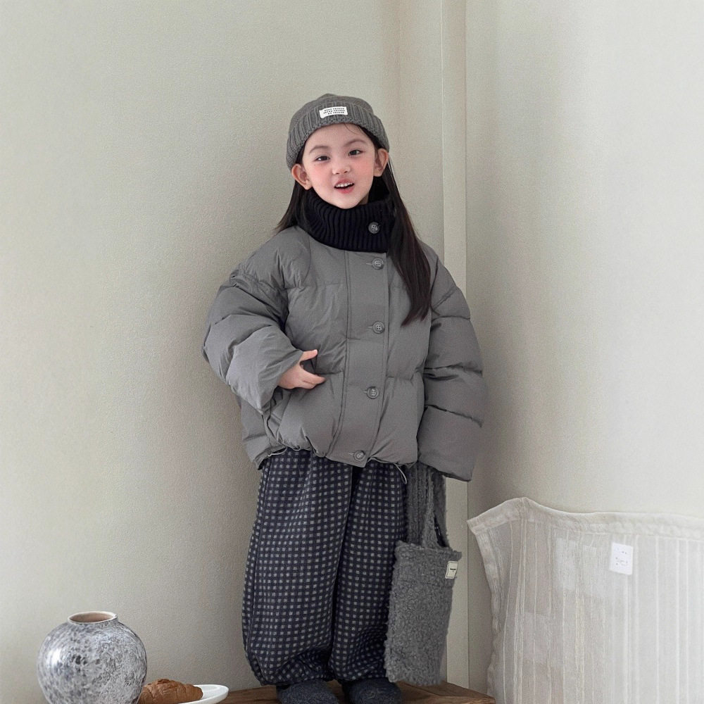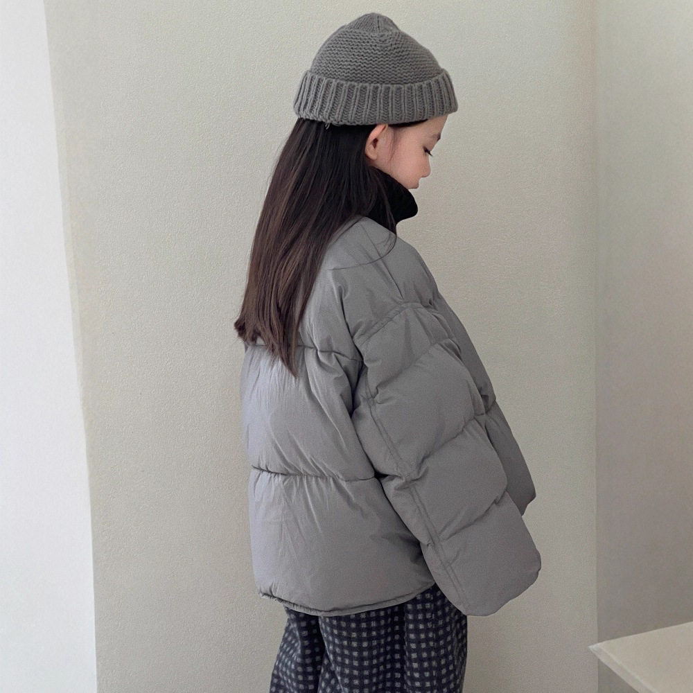 📚 儿童90绒羽绒服女童气质韩系毛线拼接半高领短款保暖面包服森系潮