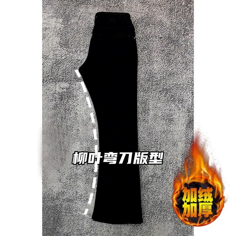 📚 加长加绒款柳叶弯刀微喇牛仔裤男高个子vibe显高修身显瘦微喇长裤