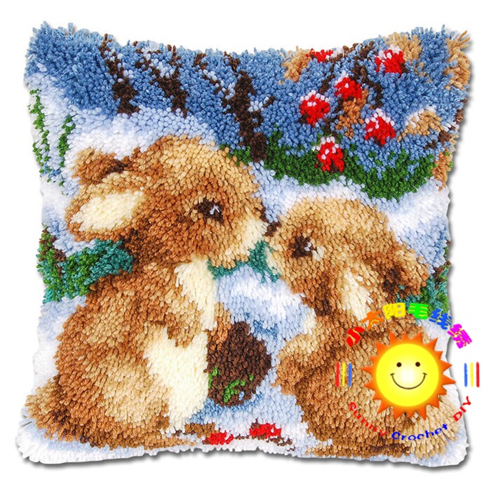 📚 Latch Hook kit段段绣/ 抱枕 /钩针绣/毛线绣/寒冬小兔 手工套件