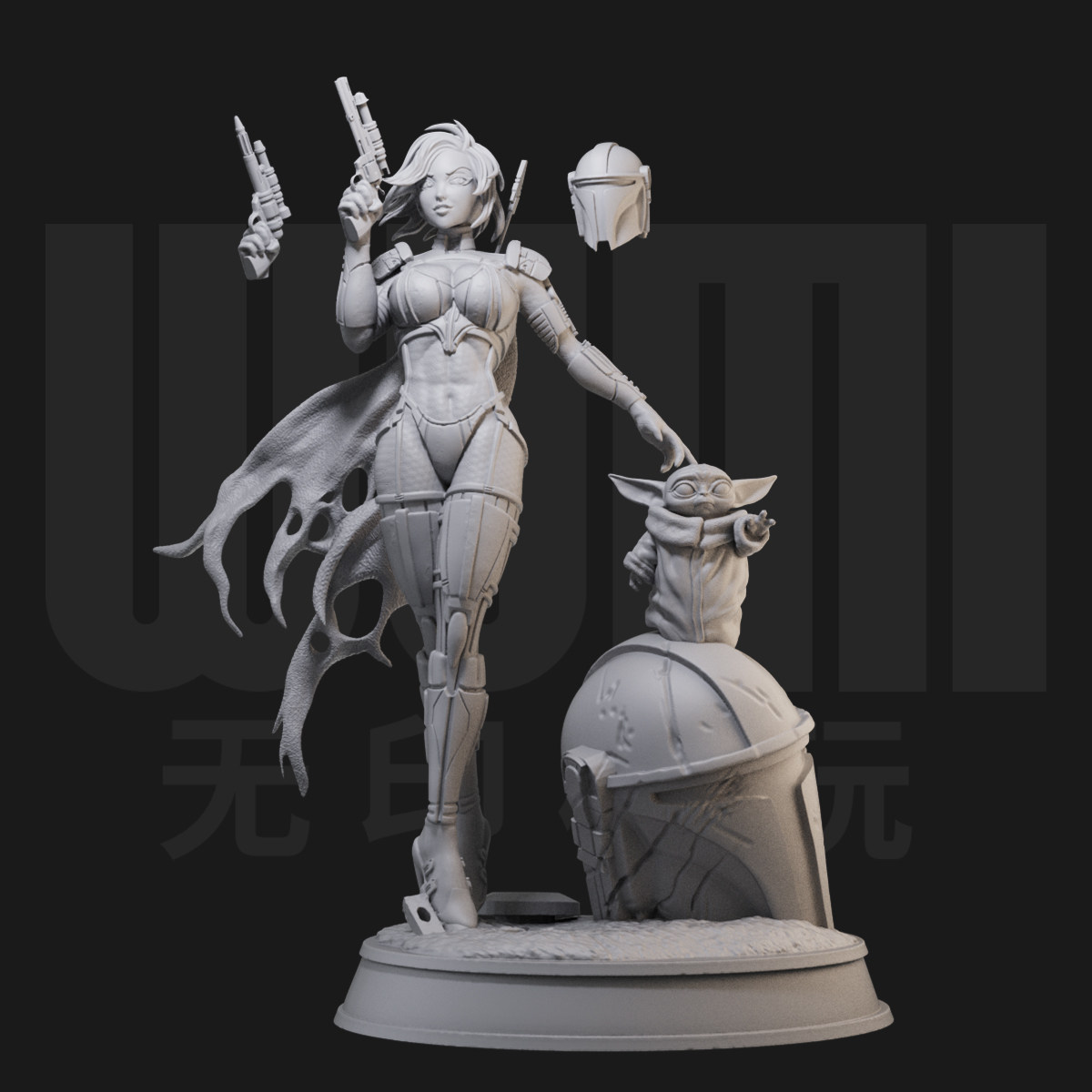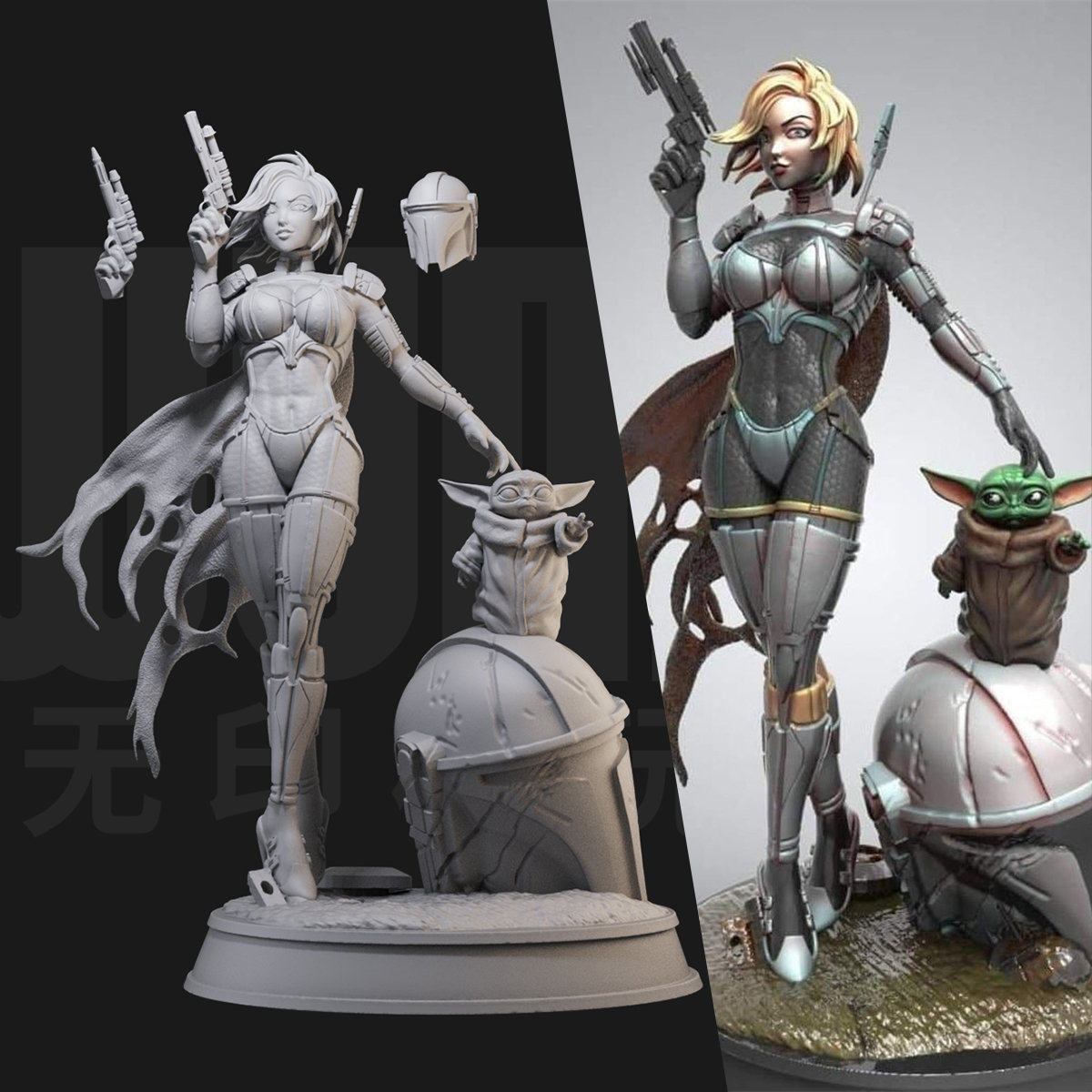 📚 1/24女曼达洛人 尤达宝宝 18比例GK白模手办 3D打印兵人模型 2196