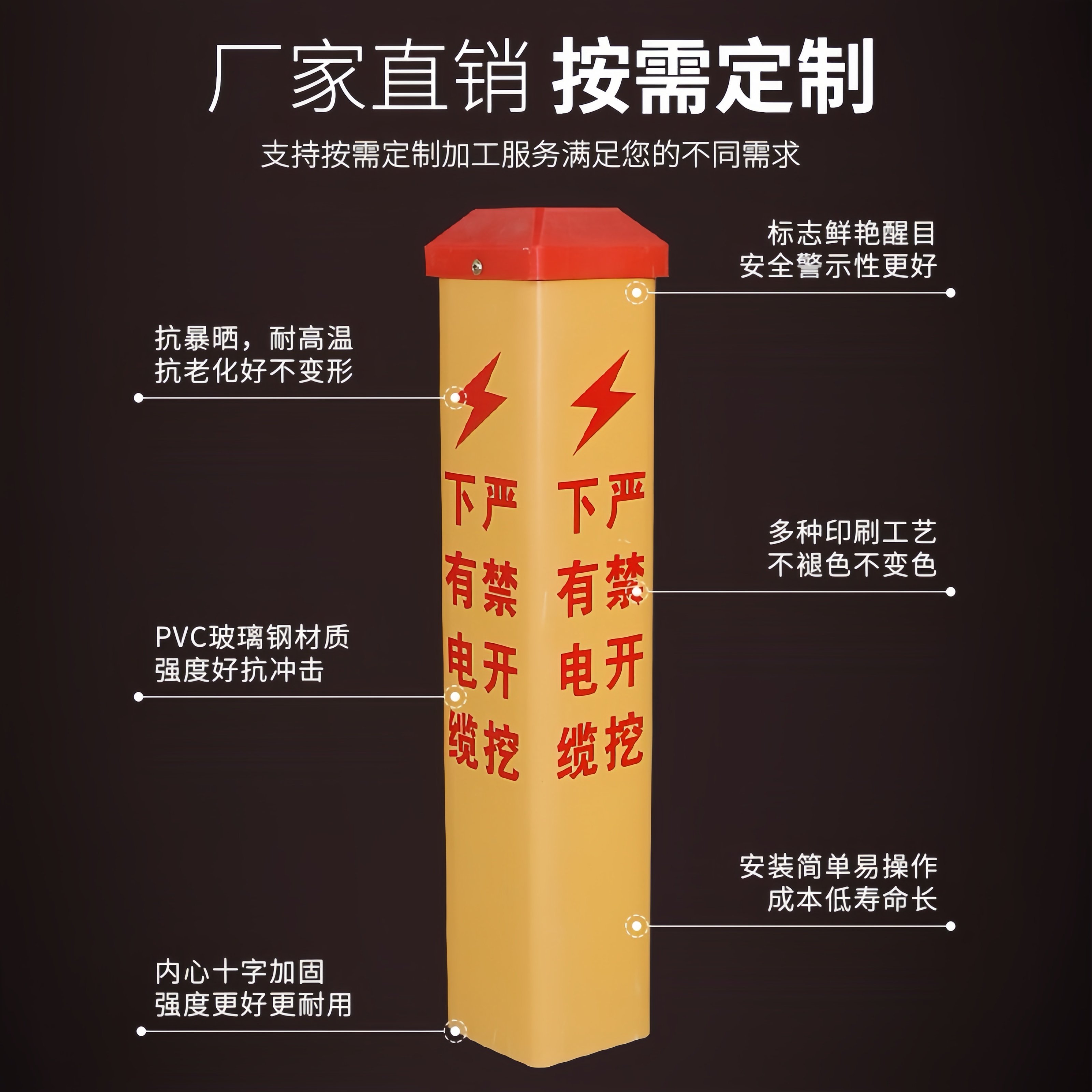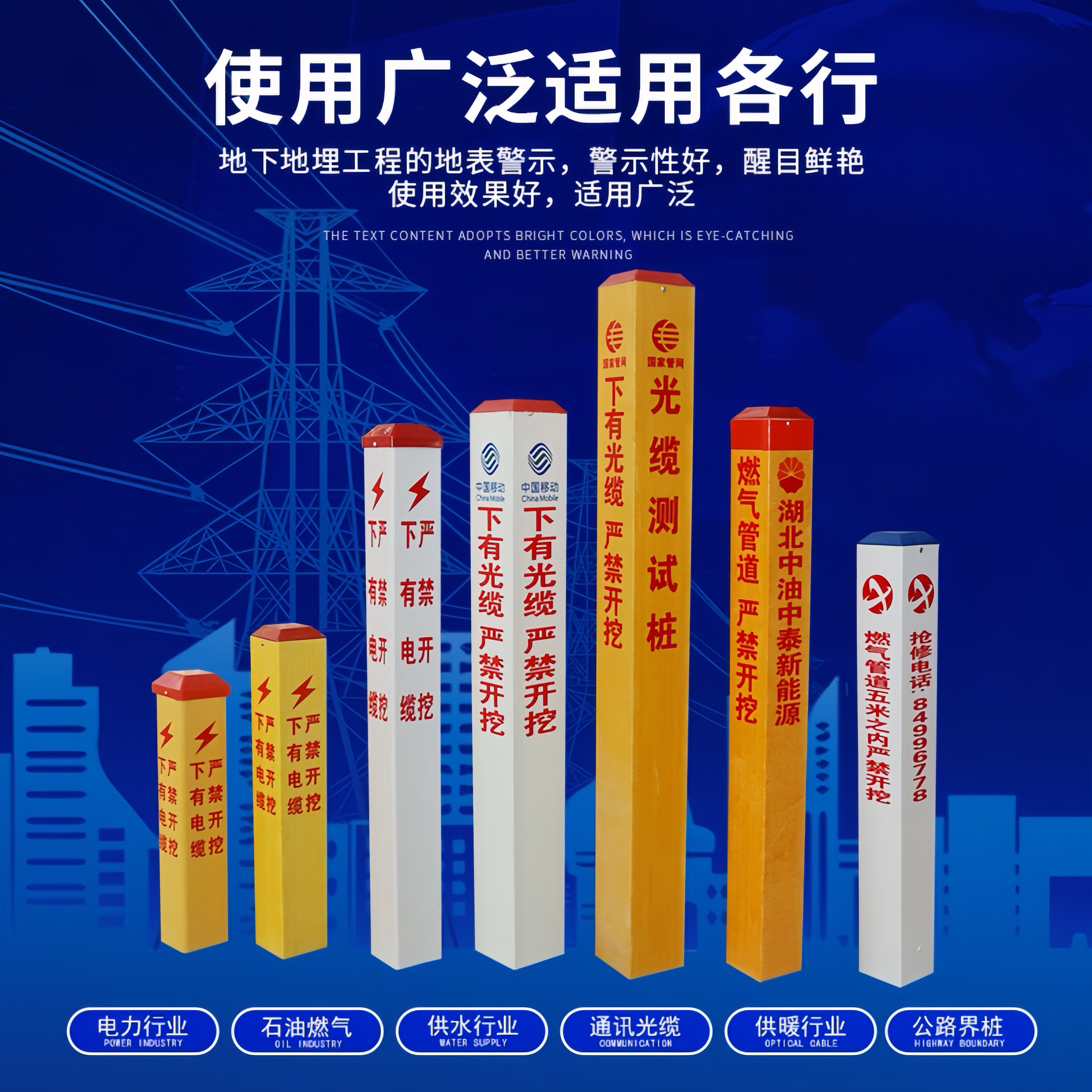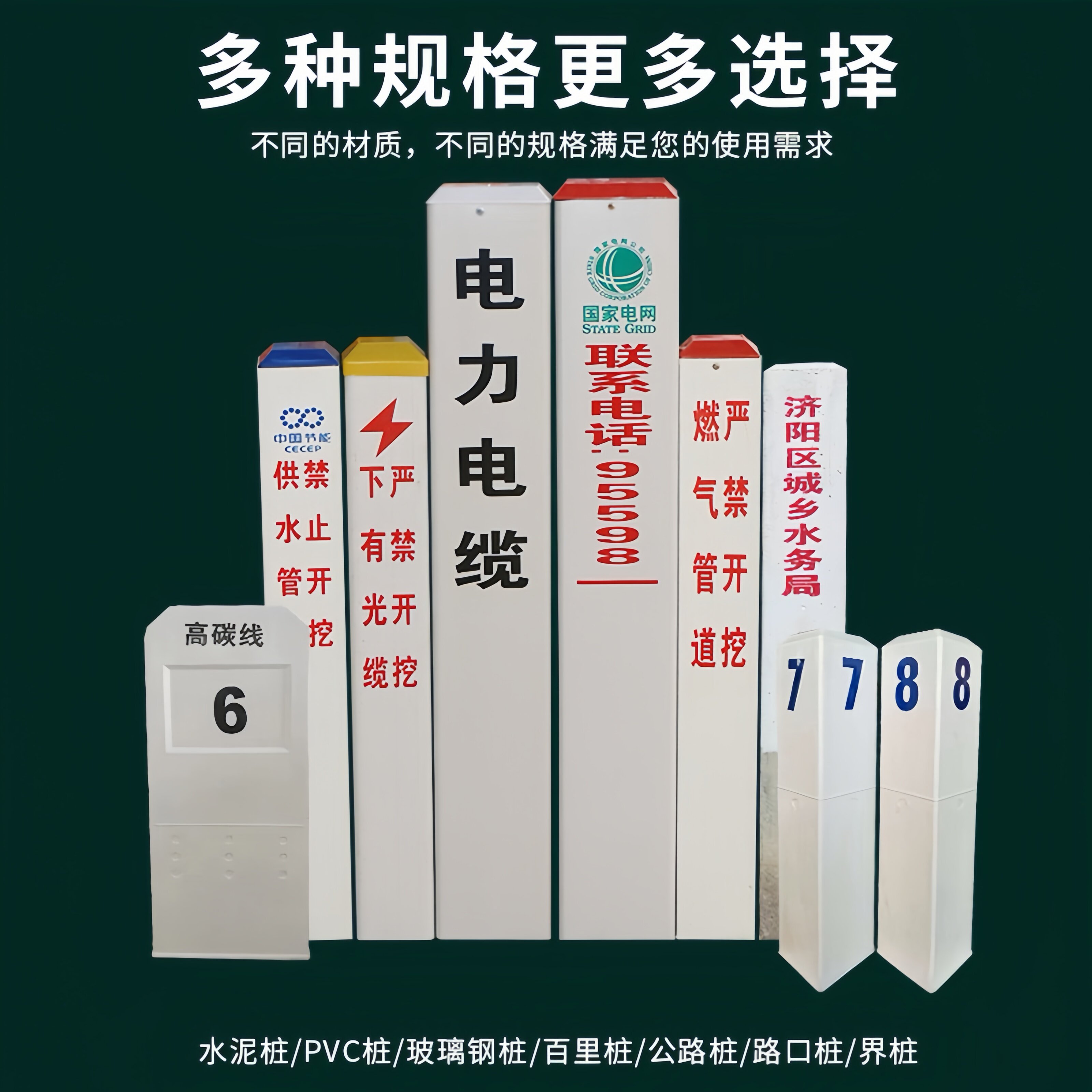 📚 下有电缆PVC标志桩警示桩玻璃钢地埋燃气管道供水光缆雕刻标识界
