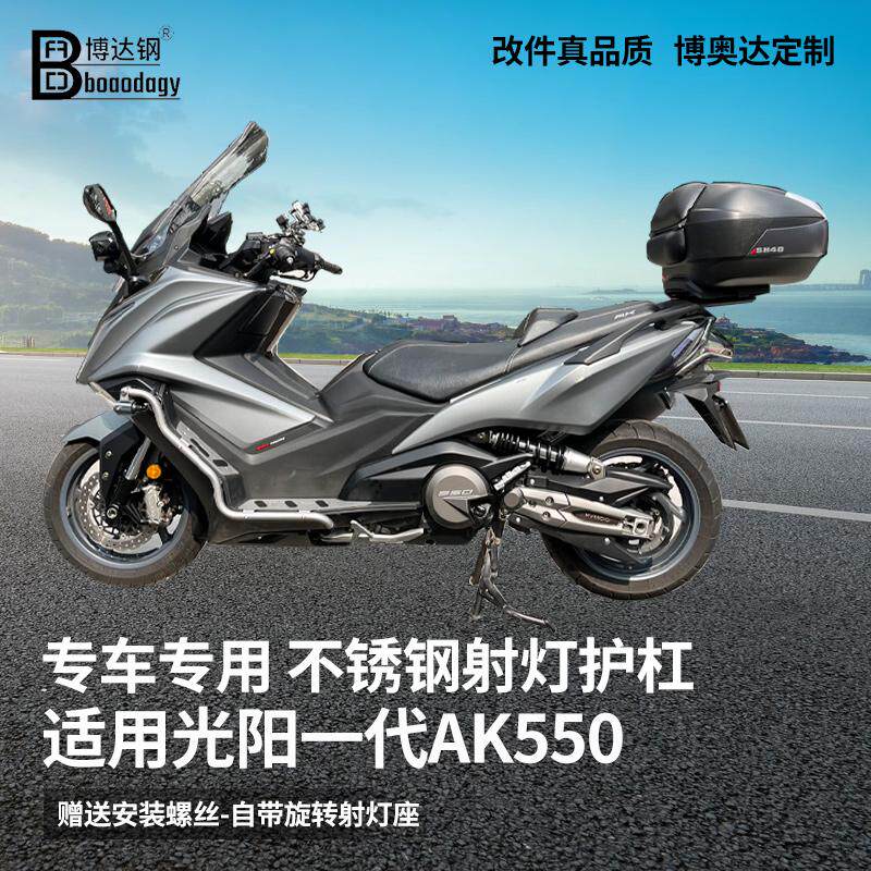 📚 适用进口光阳一代二代AK550护杠保险杠踏板一体射灯专用改装配件