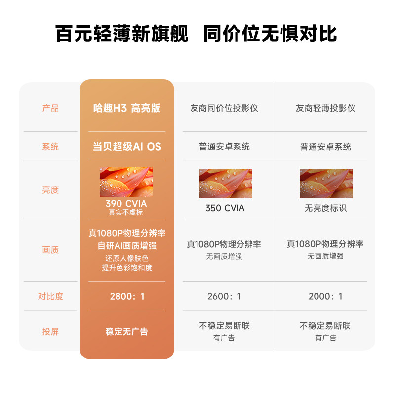67¥ HU287 tyeTUwretAk¥ https://m.tb.cn/h.iedmKB4 【政府补贴15%】哈趣H3高亮版投影仪家用超高清2026新款4K解码轻薄便携1080P卧室客厅宿舍智能影院连手机投屏 --------------------- 【原售价】1,899元 【现售价】1,899元。