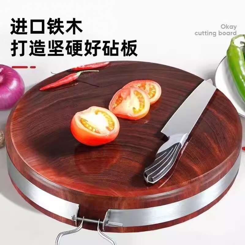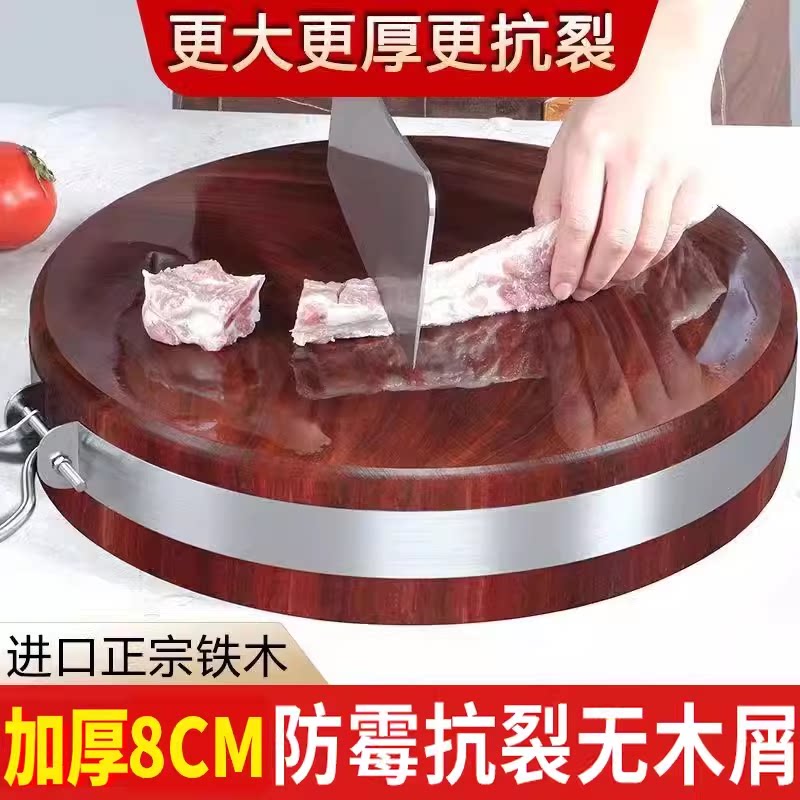 📚 酒店用加厚铁木砧板实木家用切菜板防霉抗菌案板圆形菜墩蚬木粘板