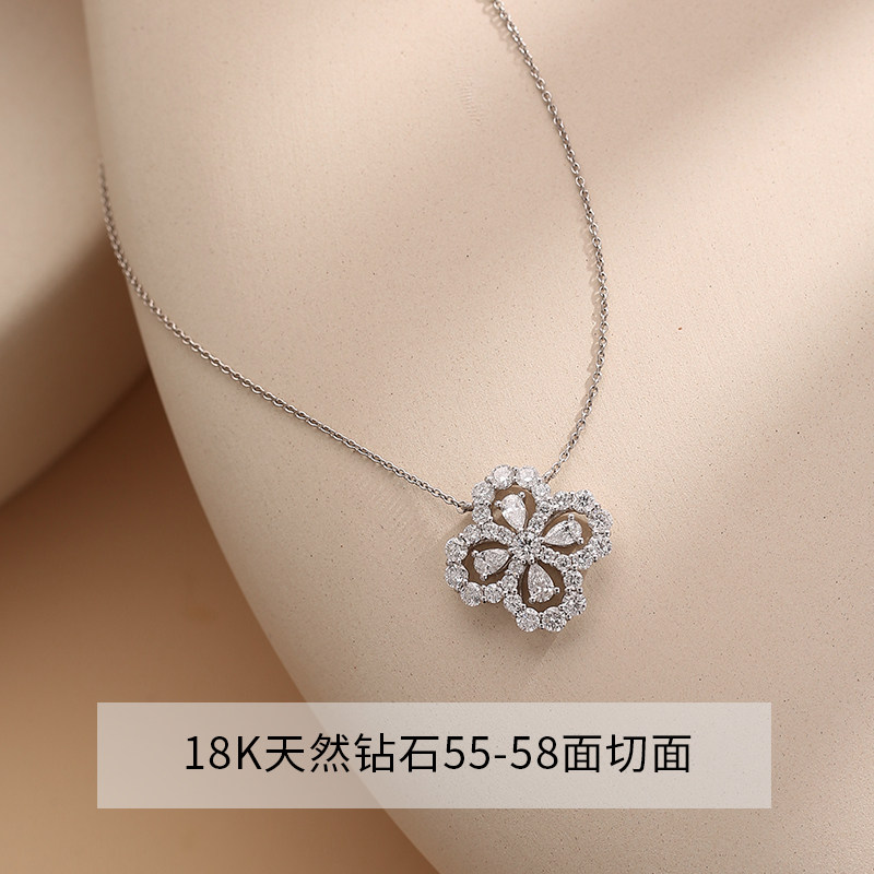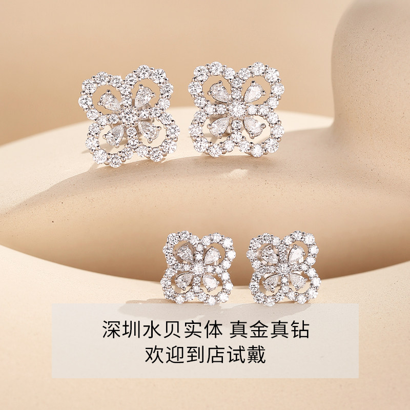 📚 18K金天然真钻石耳钉LOOP四叶草满钻项链手链气质百搭情人节礼物