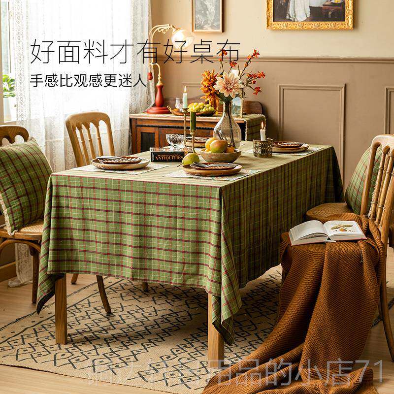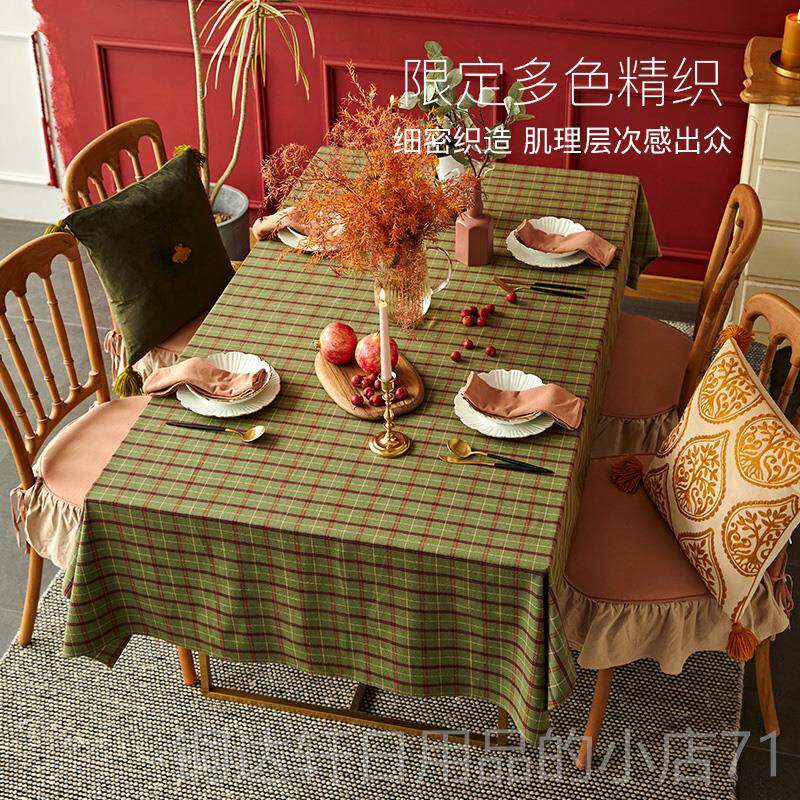 📚 高档蜡笔派围斯堡格子桌布高端复古匹绿色节定日氛蜀绣餐桌方形盖