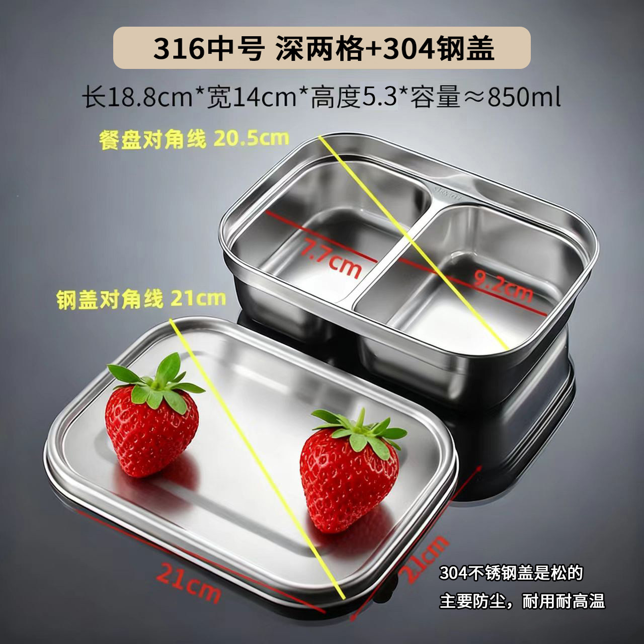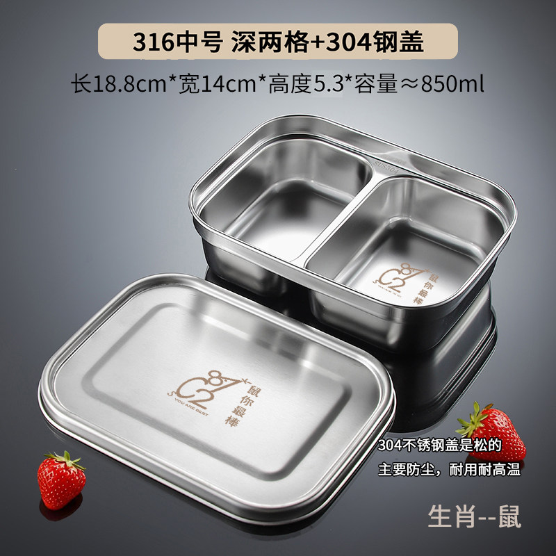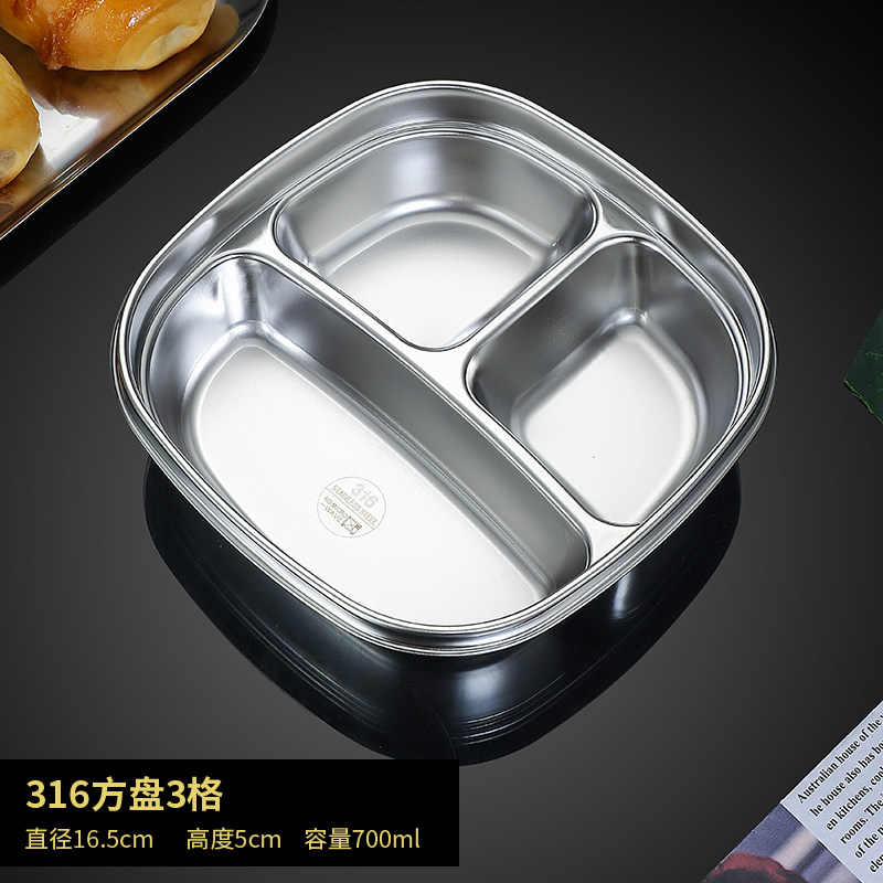 📚 316不锈钢儿童学生成人分格餐盘 上班族两格三格带盖加深吃饭餐盘