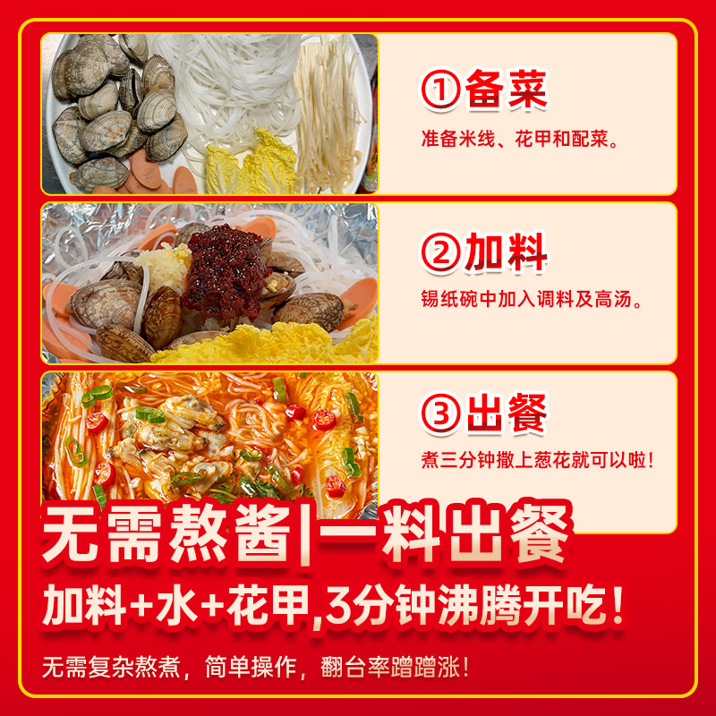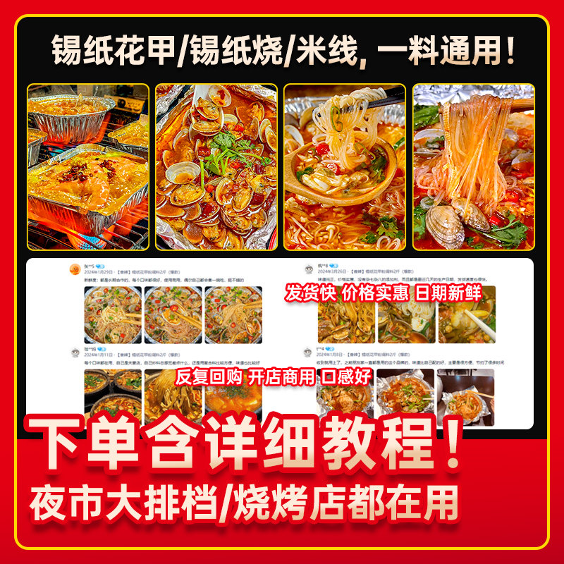 📚 花甲粉酱料商用锡纸花甲粉丝米线调料汁金针菇专用料包汤料酱