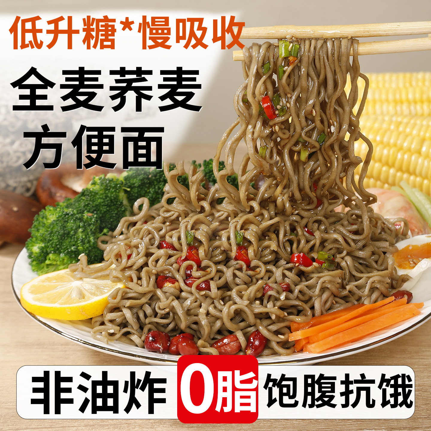 📚 非油炸0脂肪荞麦面全麦粗粮方便面无糖面条泡面减食肥品专用即食
