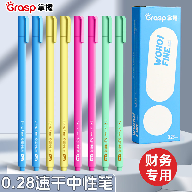 📚 掌握0.28mm细笔划中性笔三角杆全针管水笔黑色财务专用极细记账笔学生用办公商务小字体签字笔大容量黑笔