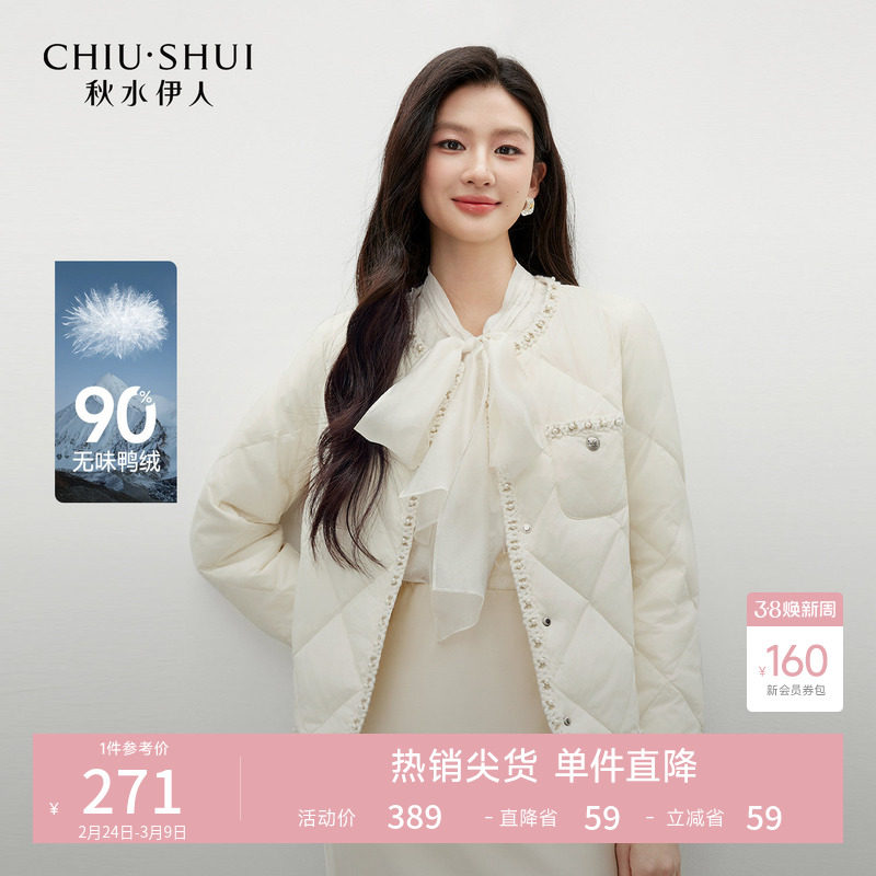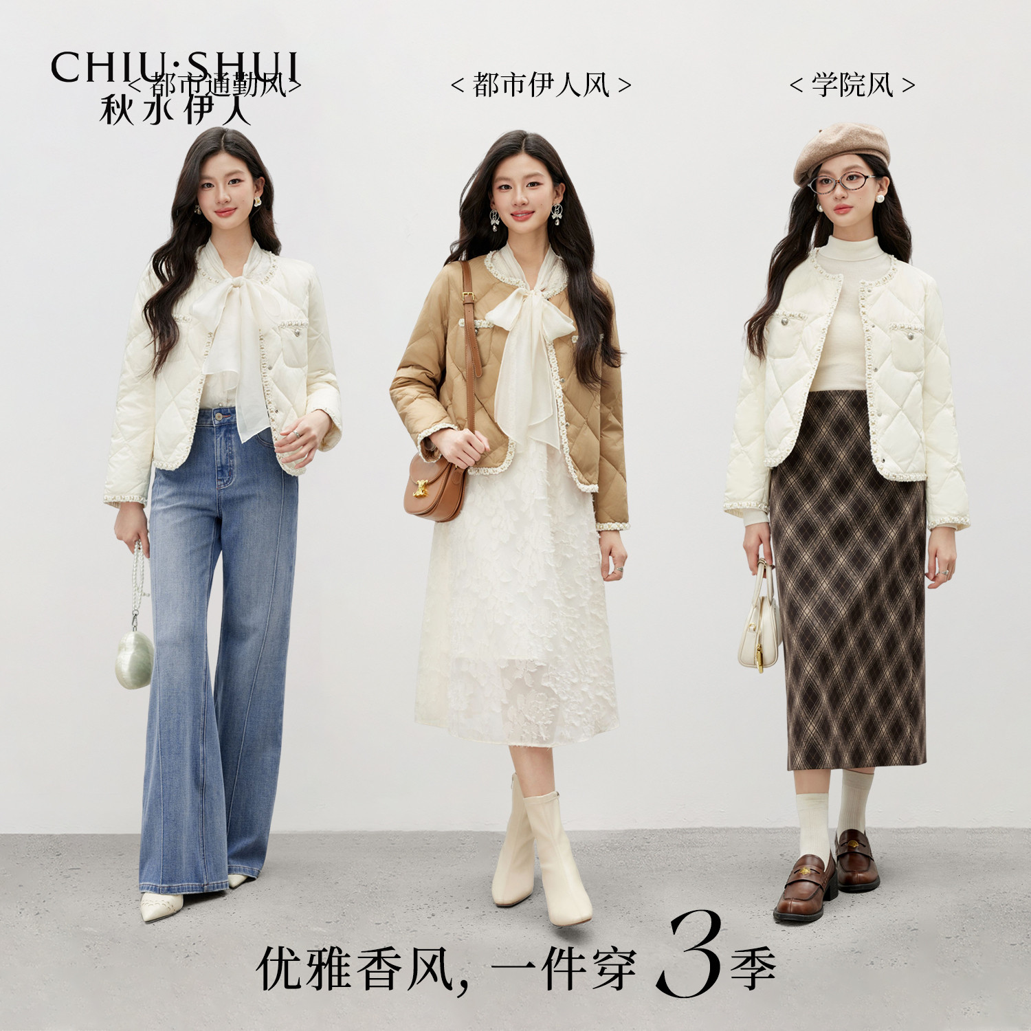 📚 秋水伊人优雅小香风圆领薄款外套2025冬季新款女短款显高羽绒服