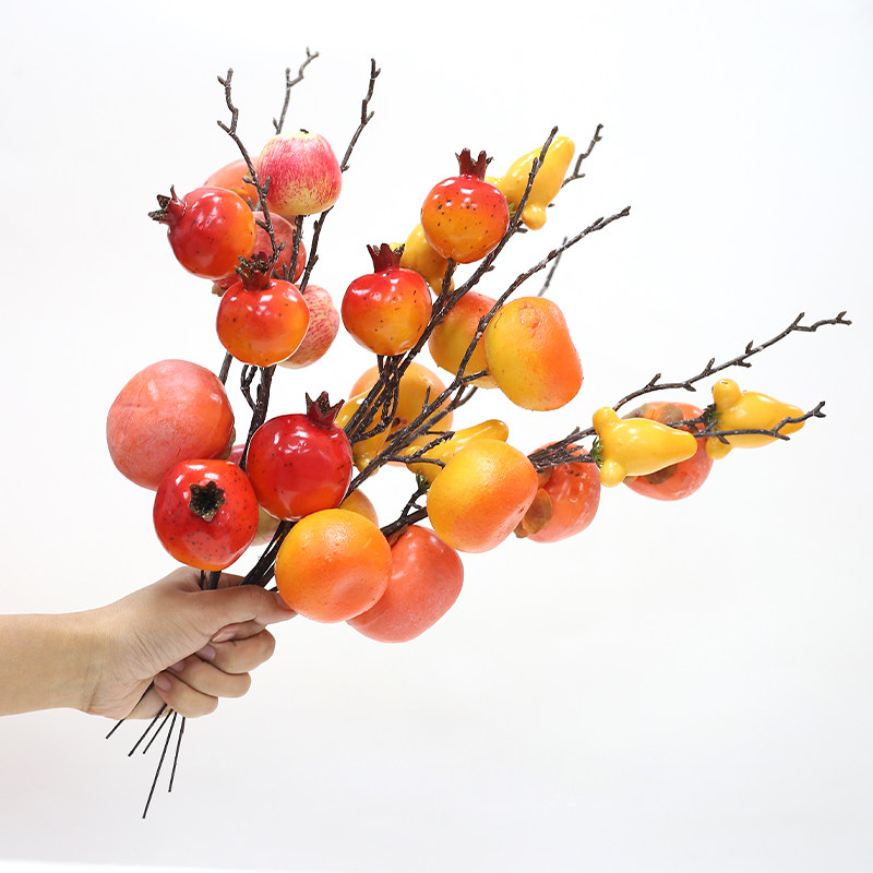 📚 2026新年仿真水果柠檬橘子桔子苹果柿子石榴福桶年宵花桶插花摆件