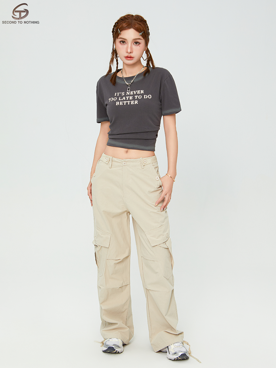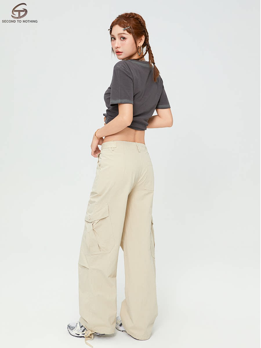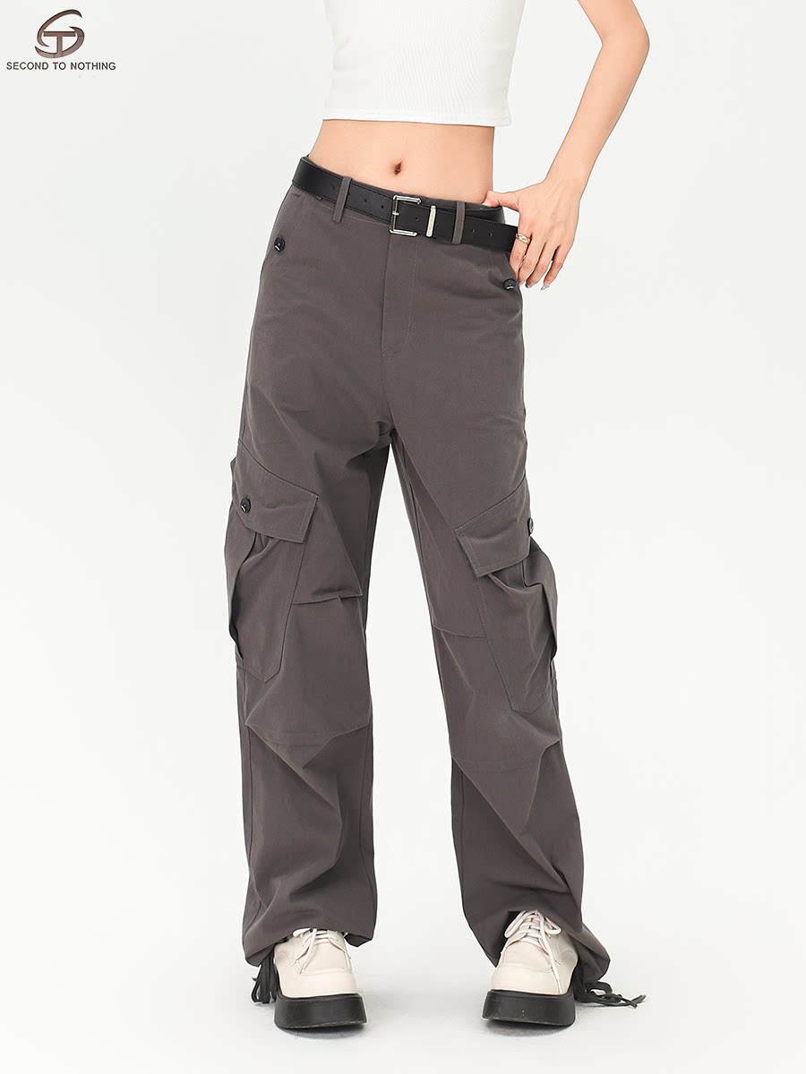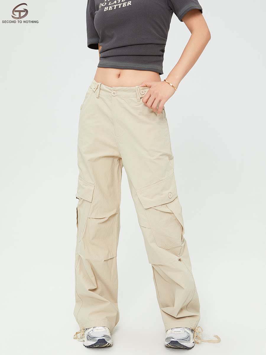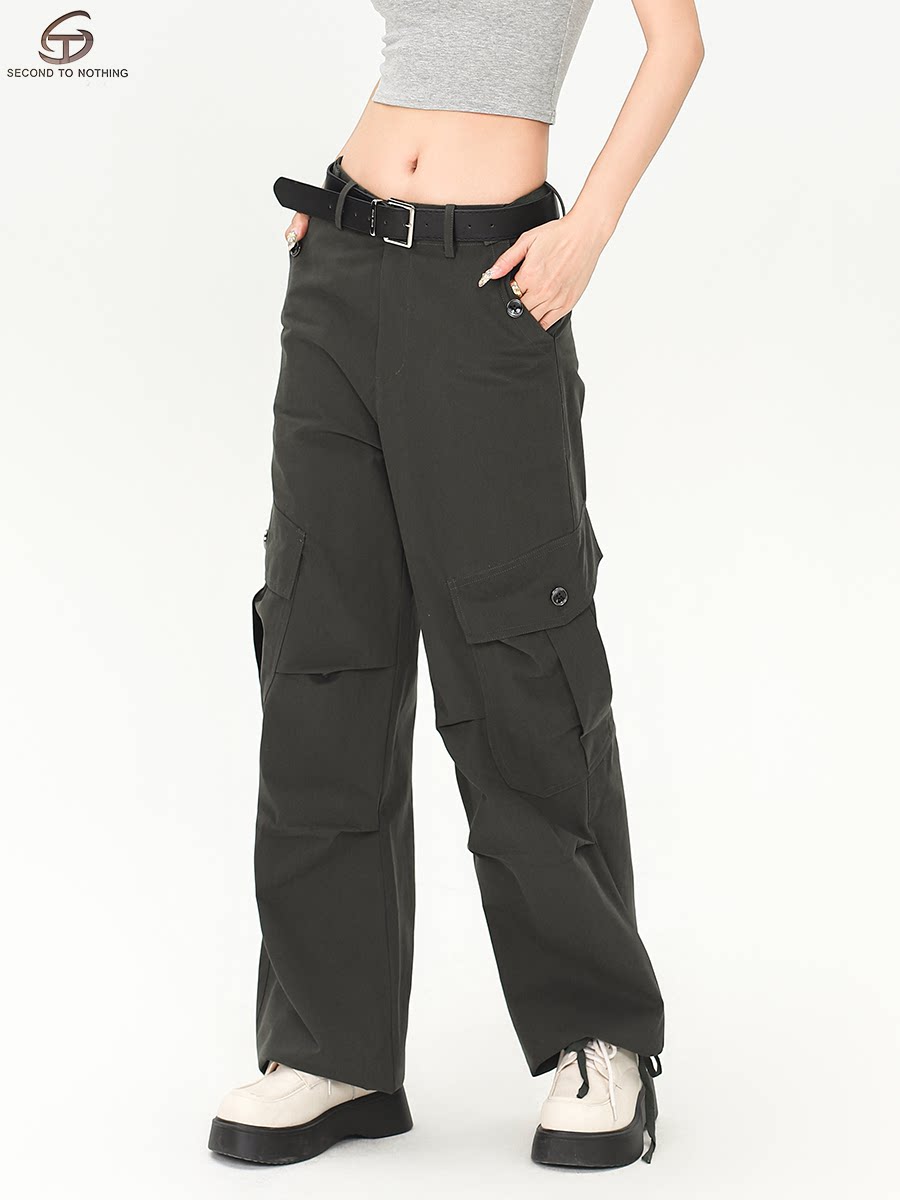 📚 STN美式复古米白色多口袋工装裤女2025新款街头宽松褶皱直筒裤子