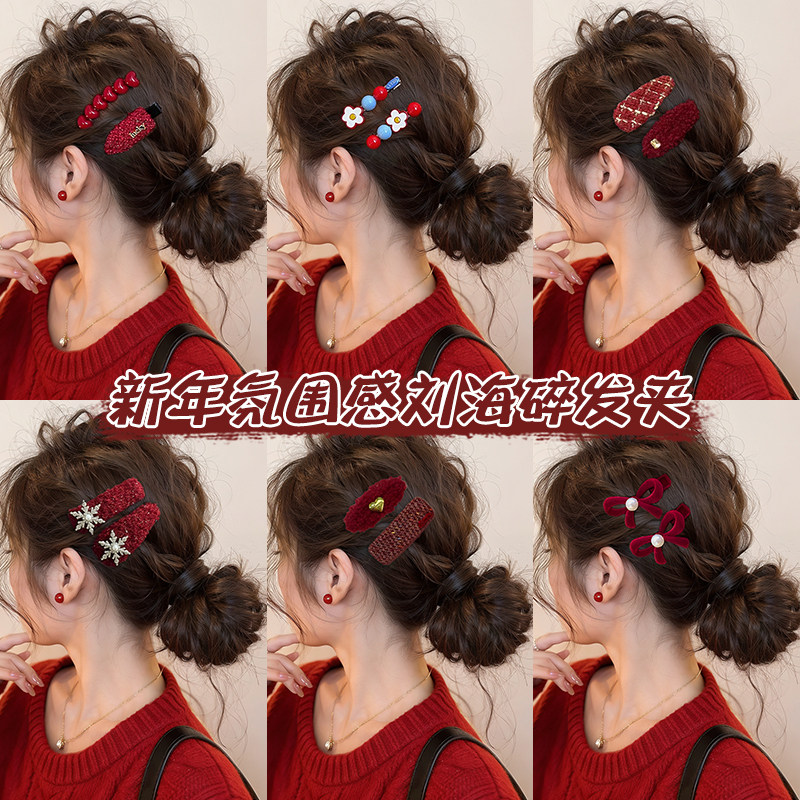 📚 新年红色刘海夹侧边发夹女2026新款高端碎发夹头饰一字夹发卡夹子