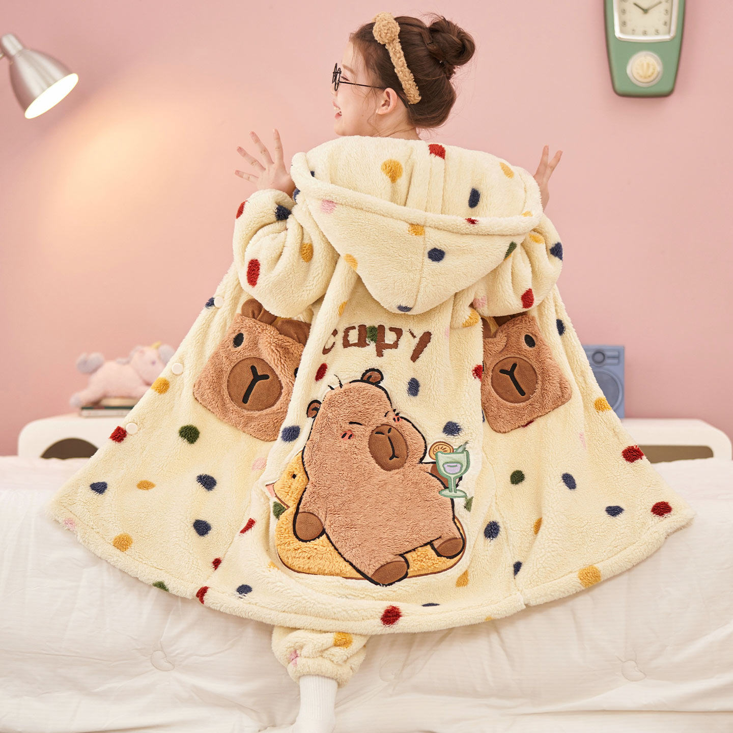 📚 hellokitty儿童睡衣女童秋冬加厚保暖提花绒凯蒂猫睡袍女孩家居服