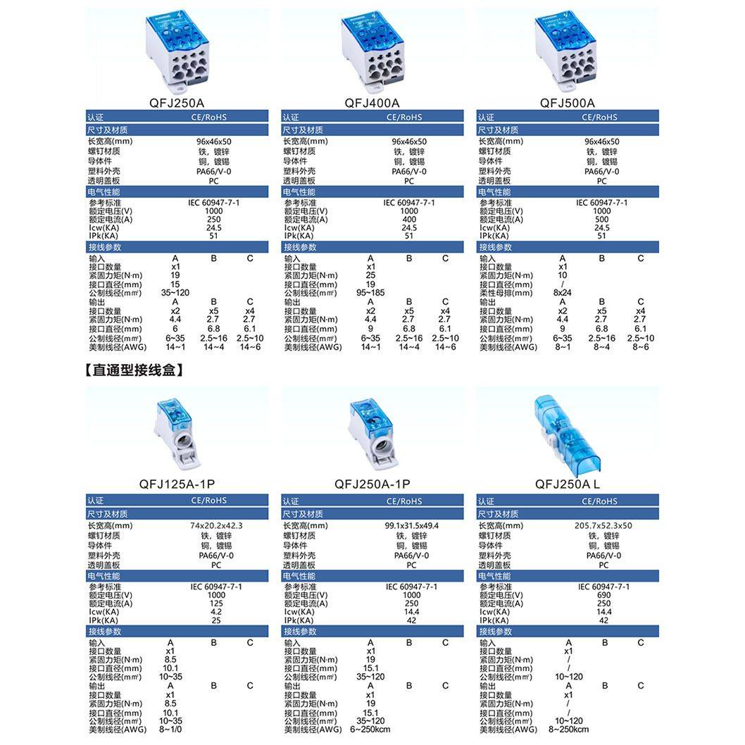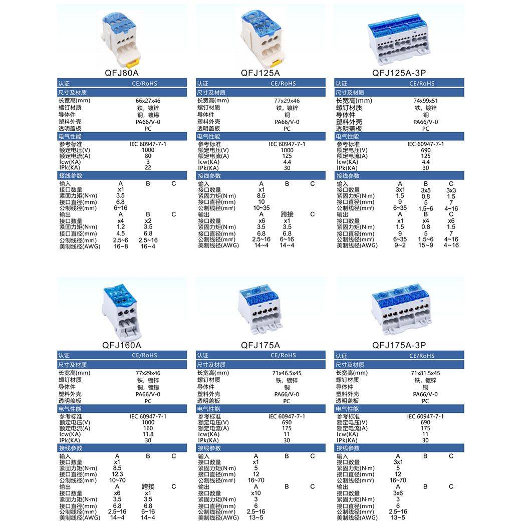 📚 QFJ400A分线盒导轨式汇流排大电流分支线接线端子排单极分线盒