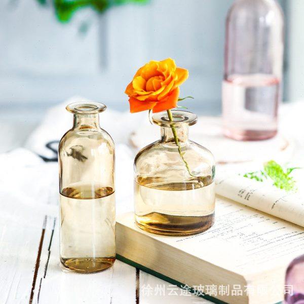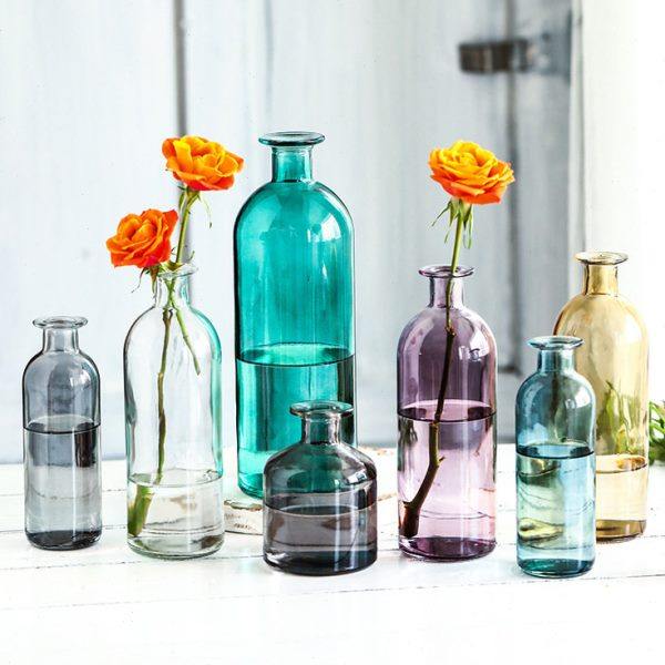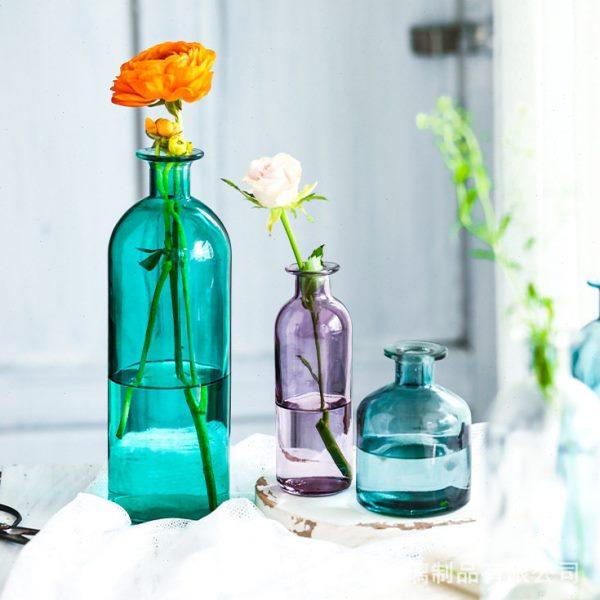 📚 玻璃花瓶北欧风彩色收口花瓶创意透明水培花瓶家居摆件