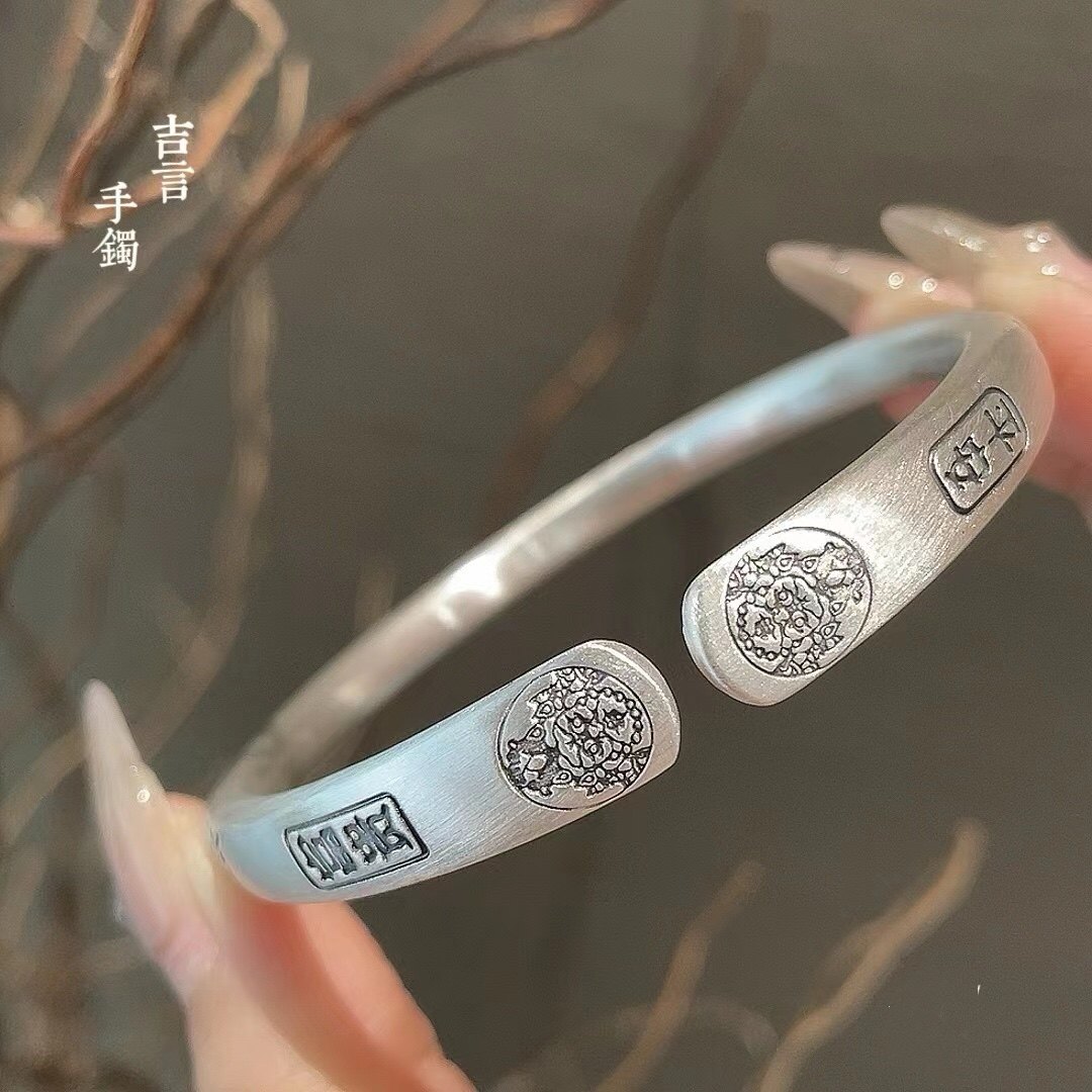 📚 胜银· 吉言仿古中间圆根两头平面实心足银999手镯男款女款通戴