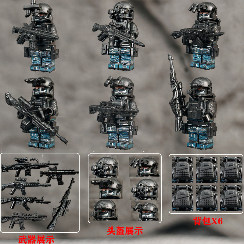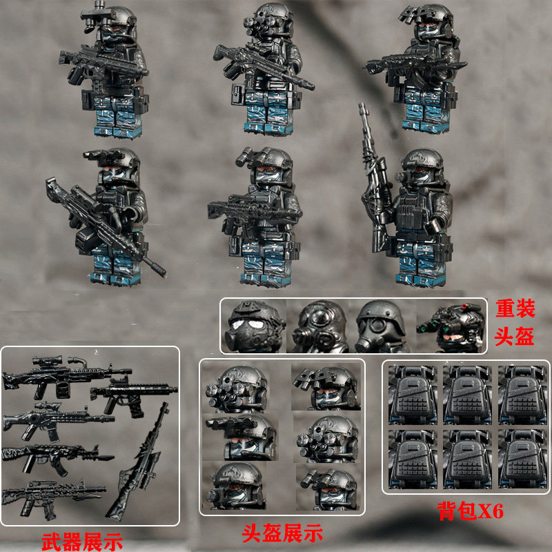 📚 第三方军事战术积木人仔双头盔反派土匪夜视仪武器装备拼装玩具