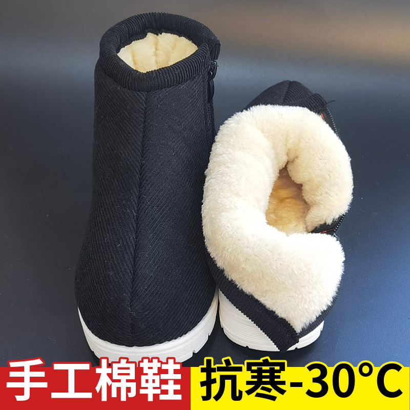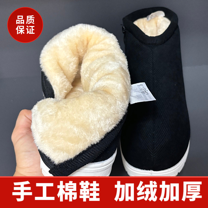 📚 恩施冬季手工棉鞋加绒加厚中老年人防滑居家男女厚底包跟高帮棉拖