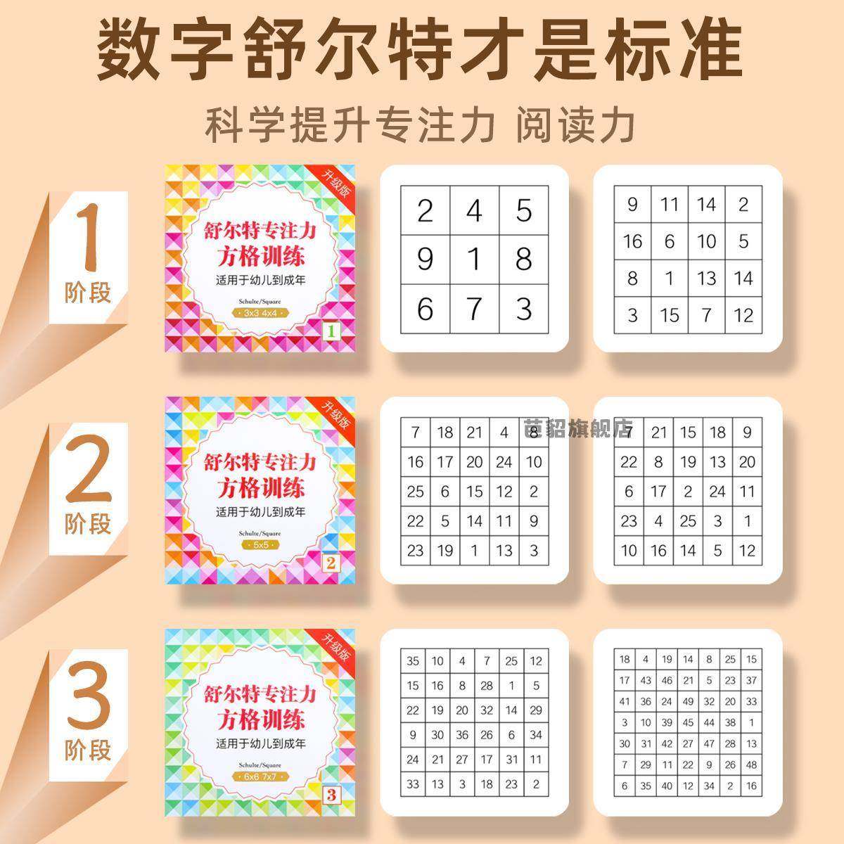 📚 舒尔特方格训练卡片提高专注力儿童耐心小学生注意力数尔特中高级