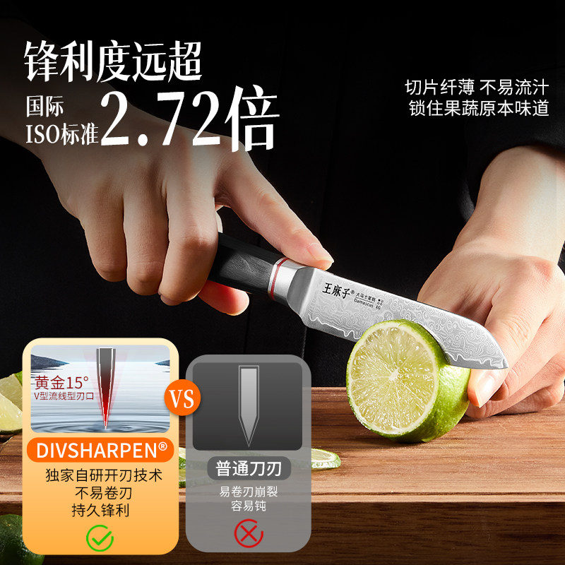 📚 王麻子大马士革家用水果刀厨房多功能辅食刀高档主厨刀刺身料理刀