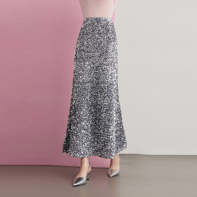 📚 DPLAY【惠品】2025年秋季灰色半身裙女长流行亮片裙子长裙