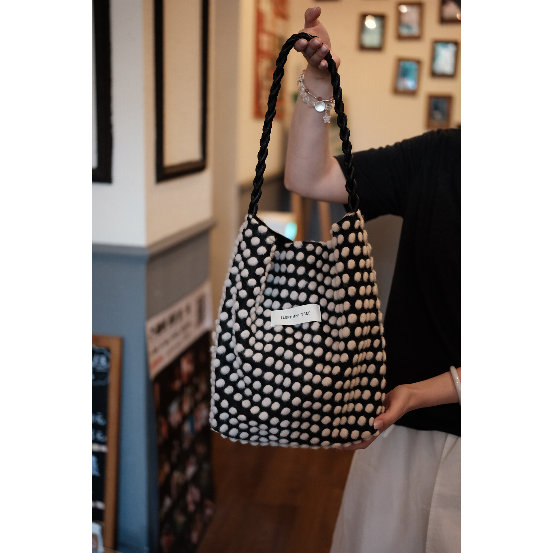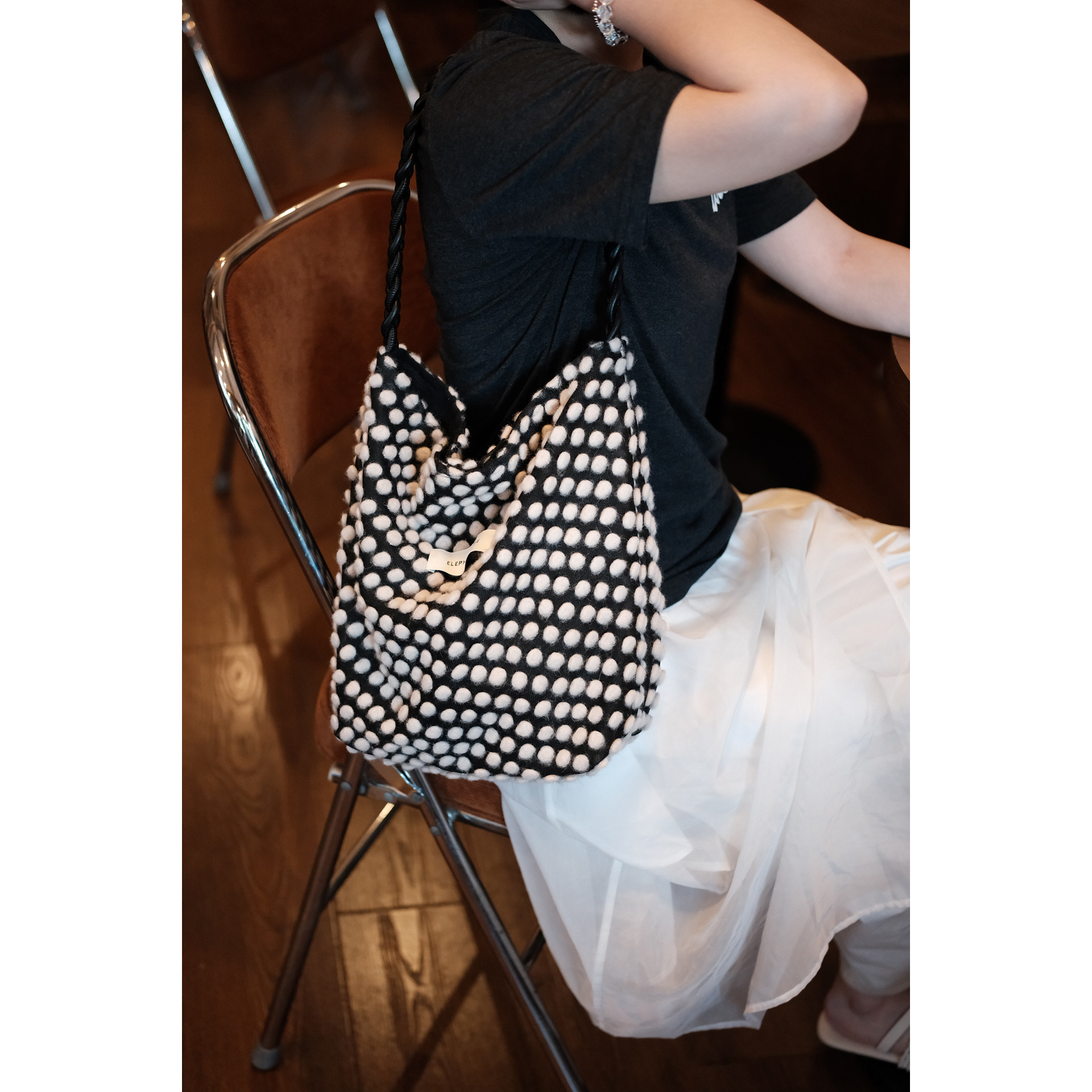 📚 气质波点时尚百搭轻奢女生单肩包帆布hobo水桶包大容量小众通勤