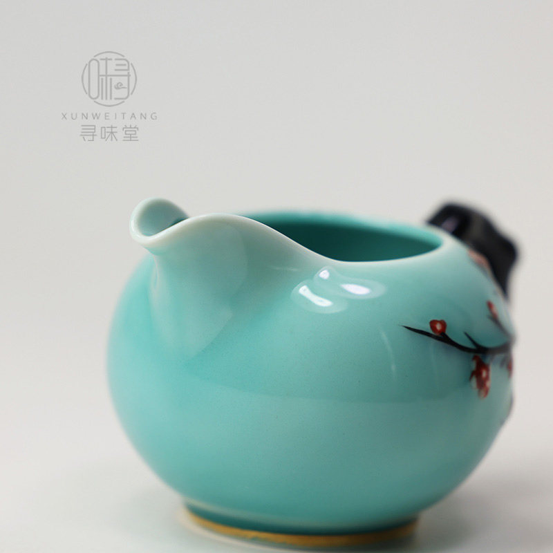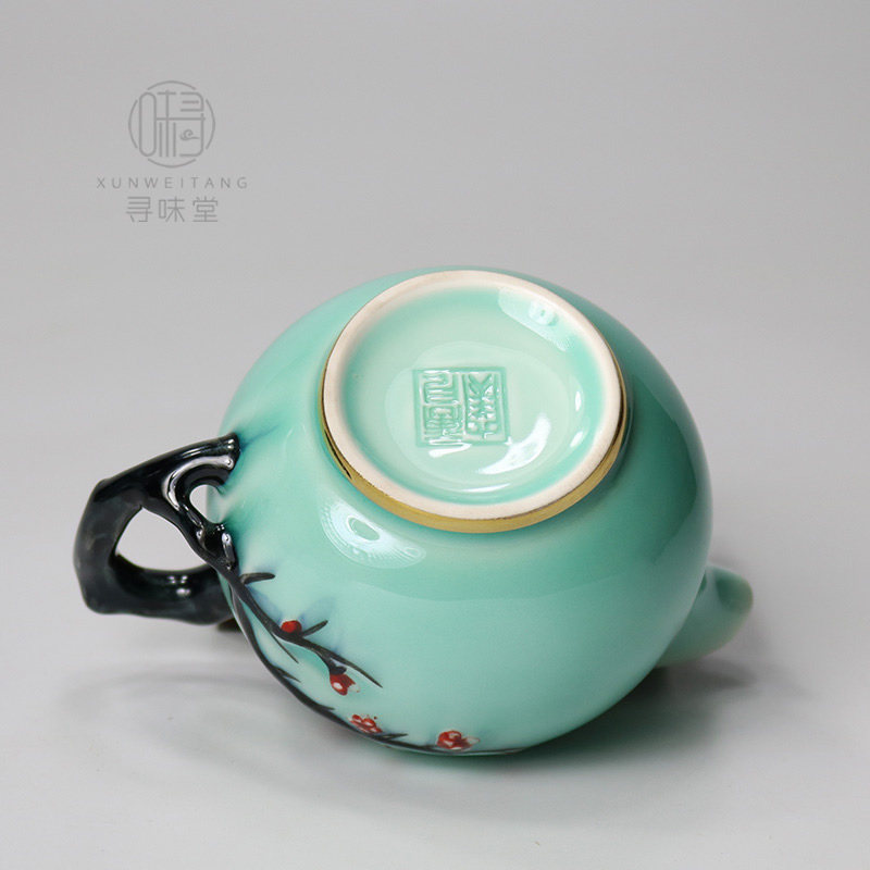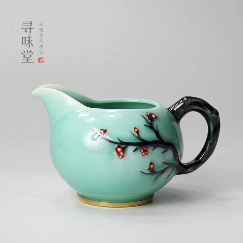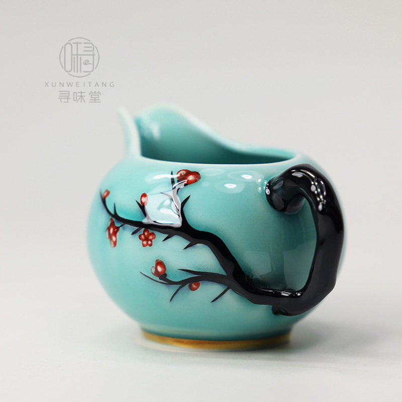 📚 描金青瓷浮雕梅花公道杯|唐月窑茶海匀杯家用中式陶瓷茶具分茶器