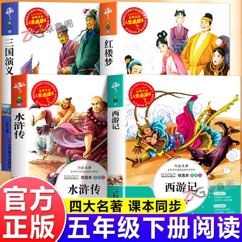📚 快乐读书吧四大名著原著正版小学生版五年级下册必读的课外书西游记三国演义水浒传红楼梦青少年版本老师推荐课外书万物复书5下z