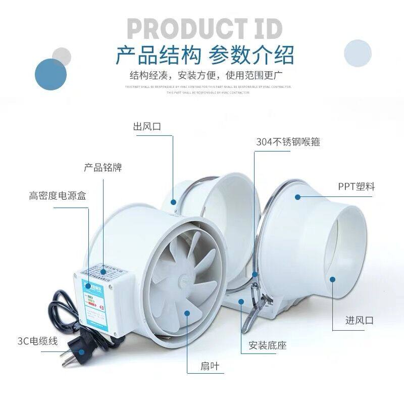 📚 3寸4寸6寸8寸寸斜流增压管道抽风机150MM管风机圆形排风扇排气扇