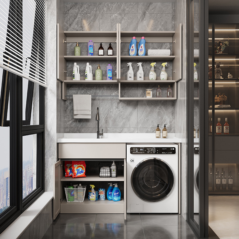 📚 蜂窝铝阳台柜洗衣机柜组合一体台盆洗衣池槽带搓板洗衣机伴侣定做
