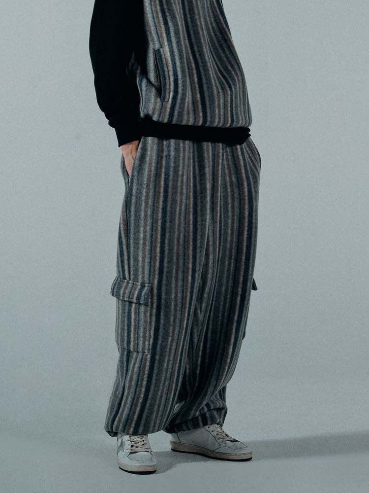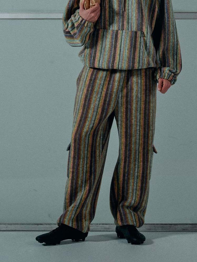 📚 SCULPTOR彩色竖条纹摇粒绒工装裤宽松休闲运动裤