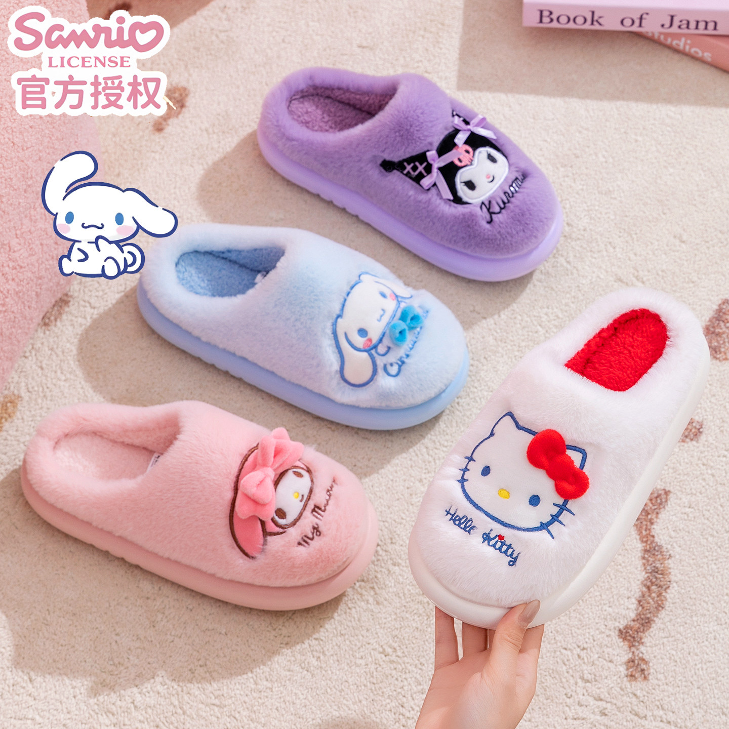📚 三丽鸥大耳狗儿童棉拖鞋冬款女大童保暖居家鞋宝宝毛毛拖鞋亲子鞋