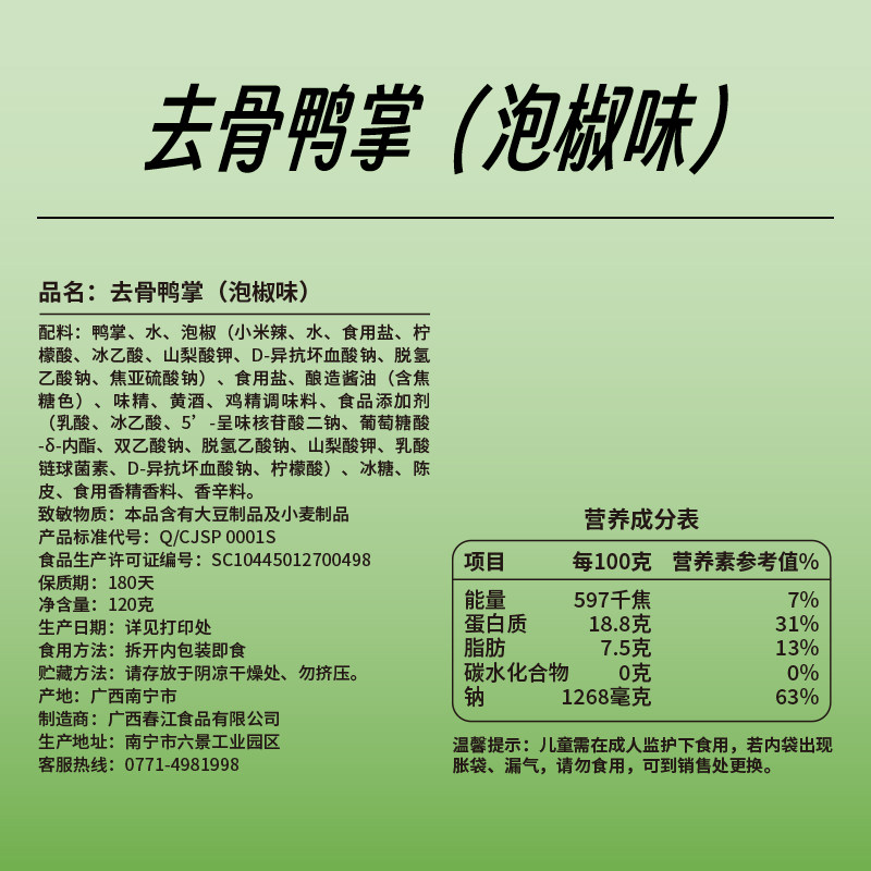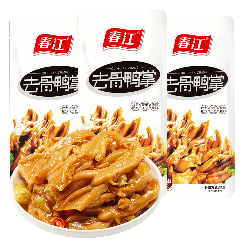 📚 春江无骨鸭掌鸭爪去骨酸辣泡椒辣味脱骨鸭脚卤味休闲零食小吃散装