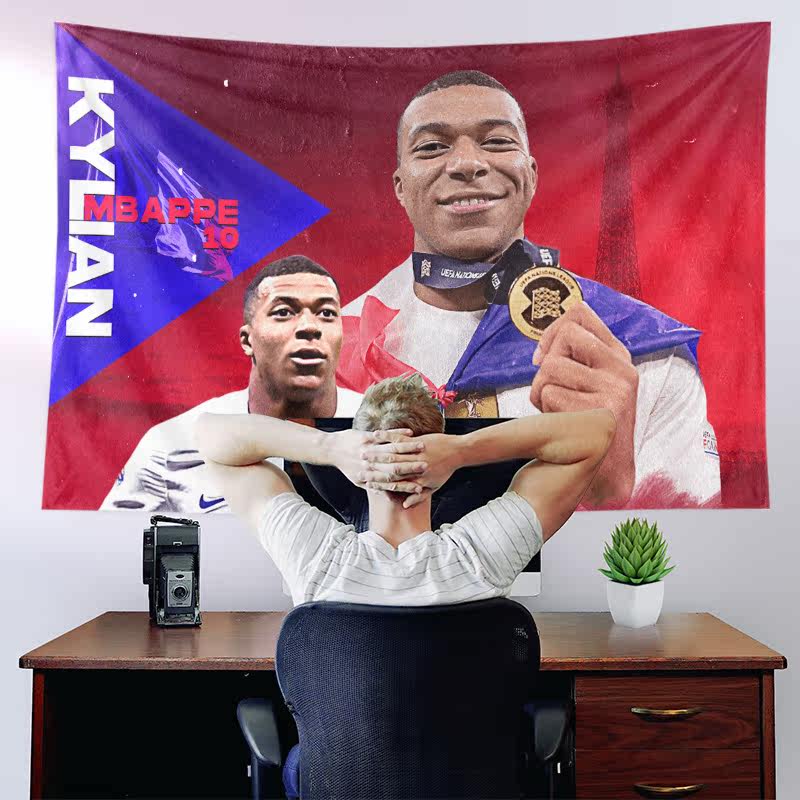 📚 姆巴佩法国国家队球星足球周边卧室房间装饰海报背景墙布挂布挂毯