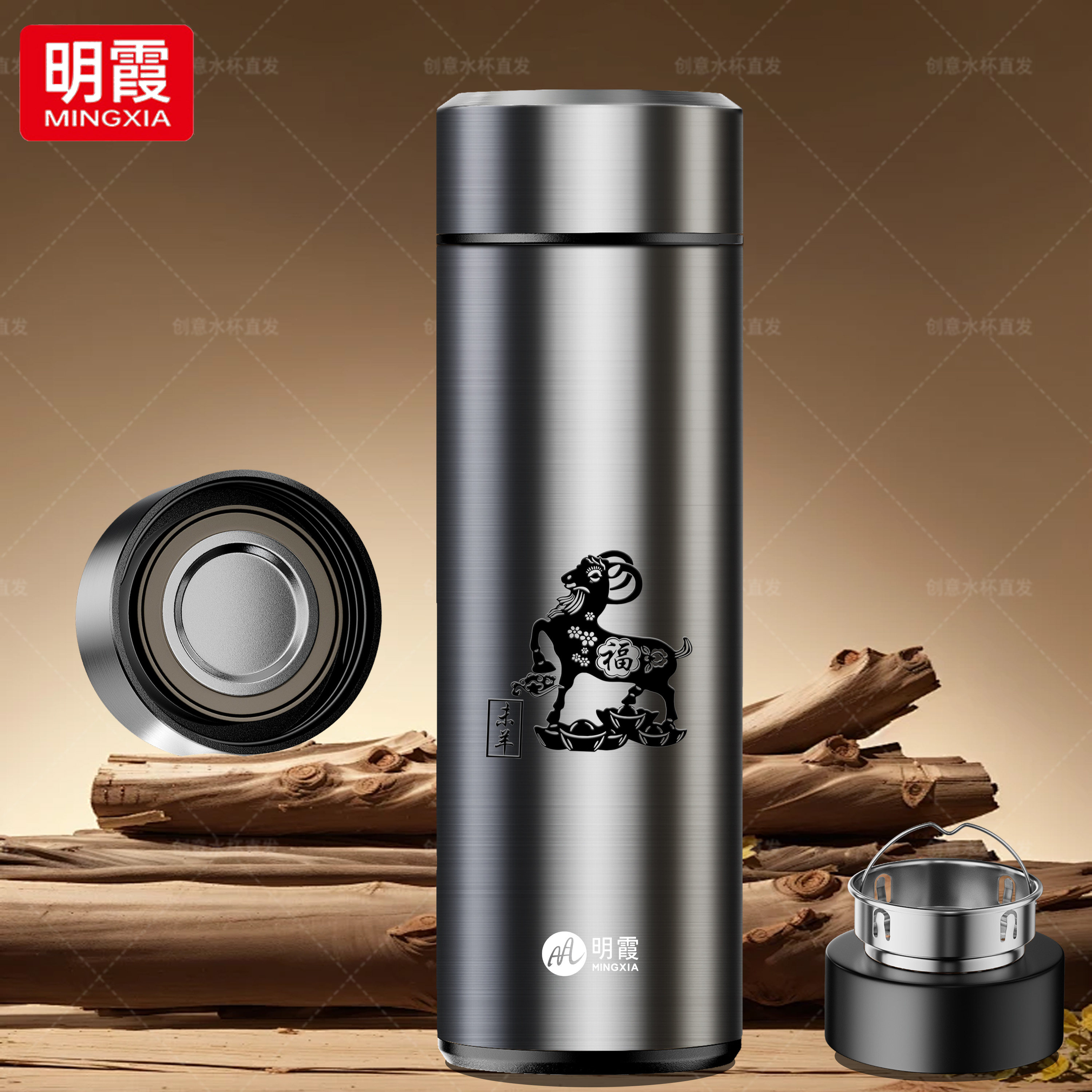 📚 新款明霞不锈钢保温杯男女商务办公车载茶水杯大容量定制生肖杯子